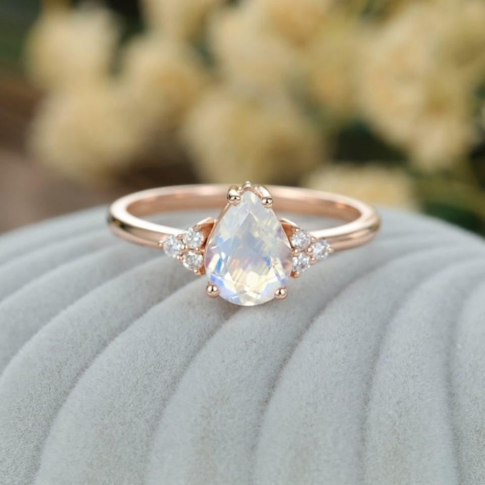 แหวนเงินแท้ 925 ชุบทองคำสีโรสโกลด์ รูปทรงลูกแพร์ ประดับนาโนซิทอล รุ่น Sweet Dream