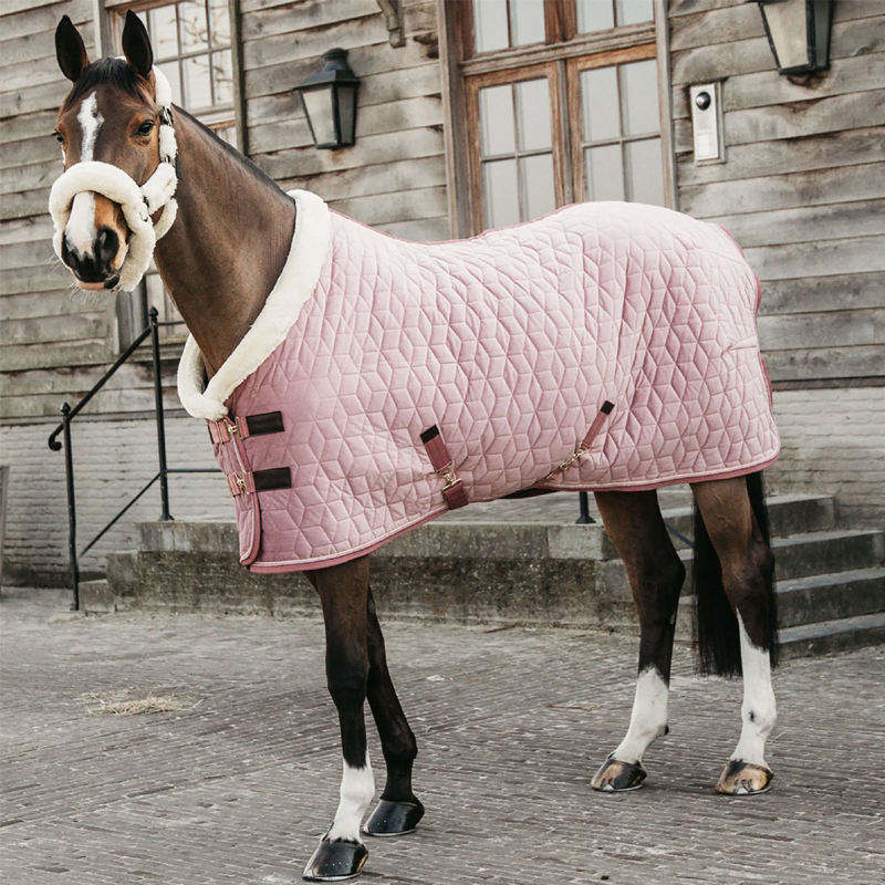 ผ้าห่มม้ากำมะหยี่ลายควิลท์สีโรสโกลด์ | ผ้าห่มขี่ม้าขนสัตว์เทียมสุดหรู | ผ้าคลุมม้าสำหรับแข่งและแสดงโชว์ ทำจากผ้าฝ้ายระบายอากาศได้ดี