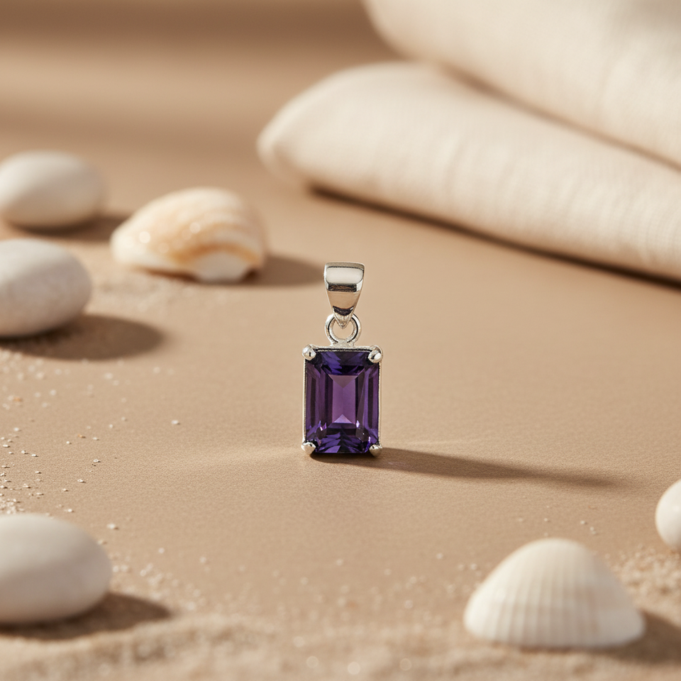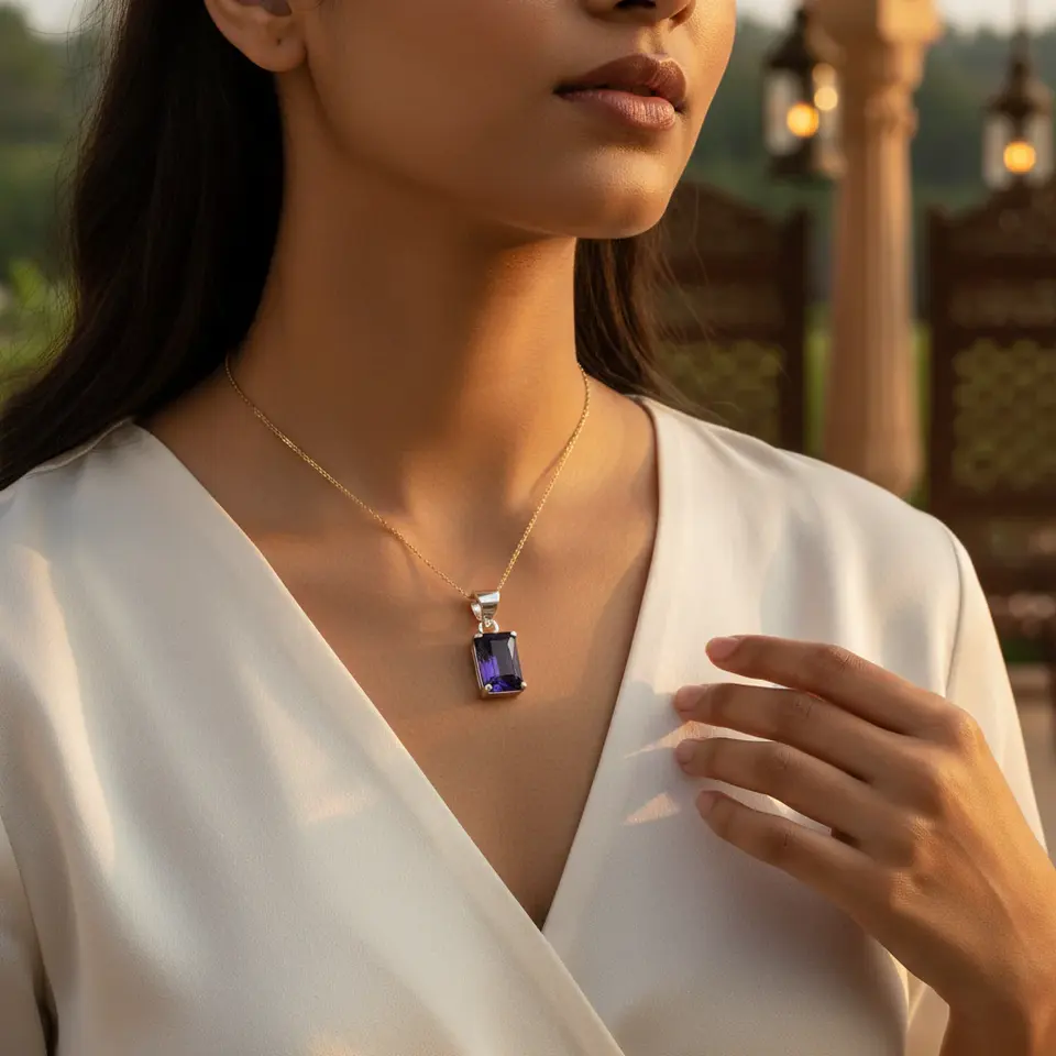 จี้ห้อยคอประดับไอโอไลต์ชุบโรเดียมสีโรสโกลด์สำหรับผู้หญิง-เครื่องประดับเงินแท้ 925 ของขวัญ