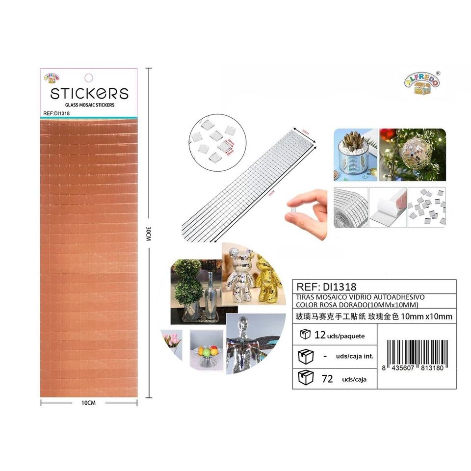 Rose Gold Self-Adhesive Glass Mosaic Strips (10mm x 10mm) 10 x 30 cm - Art & Decor Supplies