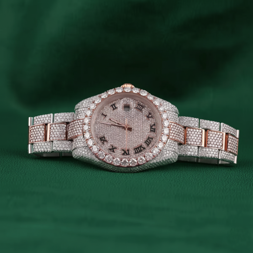 นาฬิกาโรสโกลด์ประดับเพชรสำหรับผู้หญิง สายแบบกำไลหรูหรา ตัวเลขโรมัน ของขวัญวันครบรอบสำหรับเธอ