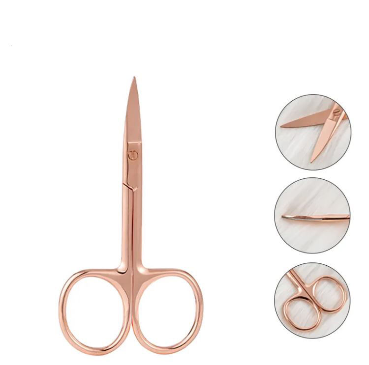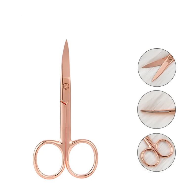 กรรไกรตัดหนังกำพร้าสแตนเลสสีโรสโกลด์ ใบมีดโค้ง กรรไกรทำเล็บมือและเล็บเท้า อุปกรณ์เสริมความงาม พร้อมบรรจุภัณฑ์แบบกำหนดเอง
