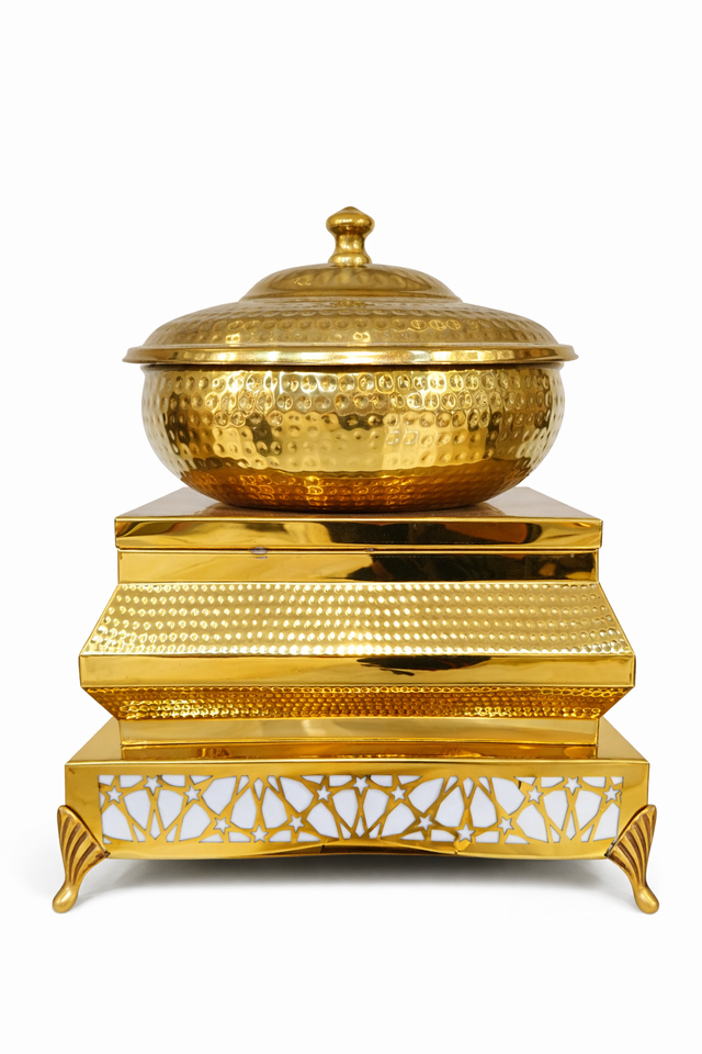 ถาดอุ่นอาหารทรงกลมสแตนเลสสีโรสโกลด์