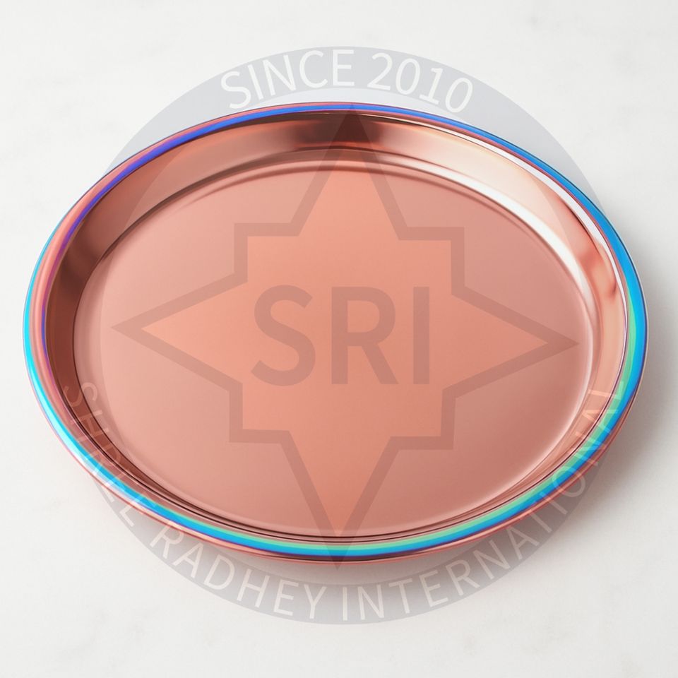 จานสแตนเลสสีโรสโกลด์ขอบสีรุ้ง