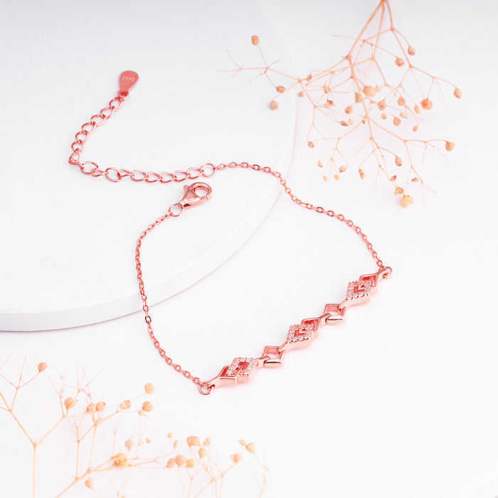 กำไลข้อมือสแตนเลสสตีลสีโรสโกลด์ ดีไซน์คลาสสิกแบบเรขาคณิตเชื่อมต่อกัน ประดับเพชรและมุก น่ารัก สไตล์ศาสนาคริสต์ ทันสมัย ชุบเคลือบ