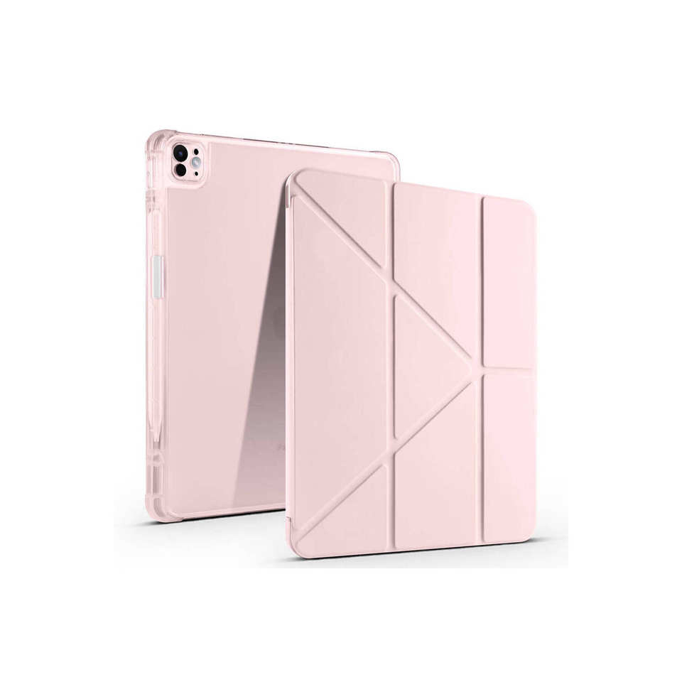 เคสกันกระแทกแบบพับสามตอน สีโรสโกลด์ วัสดุ TPU/PU/PC พร้อมช่องใส่ปากกา สำหรับ iPad Pro 11 นิ้ว
