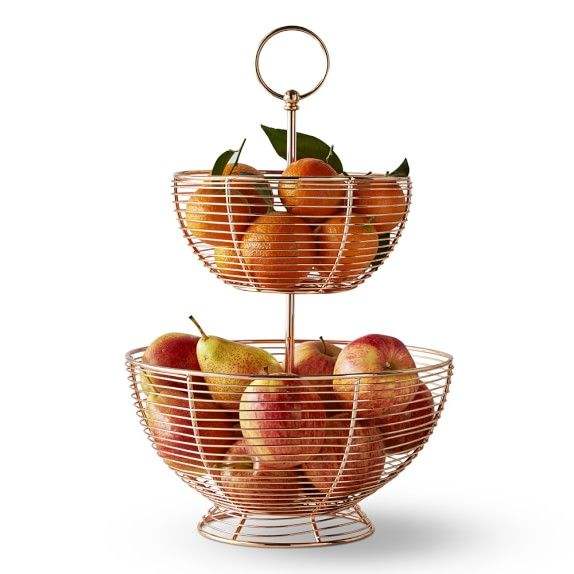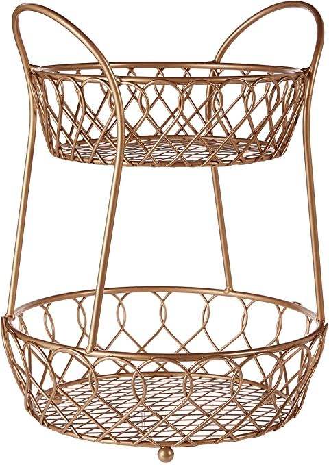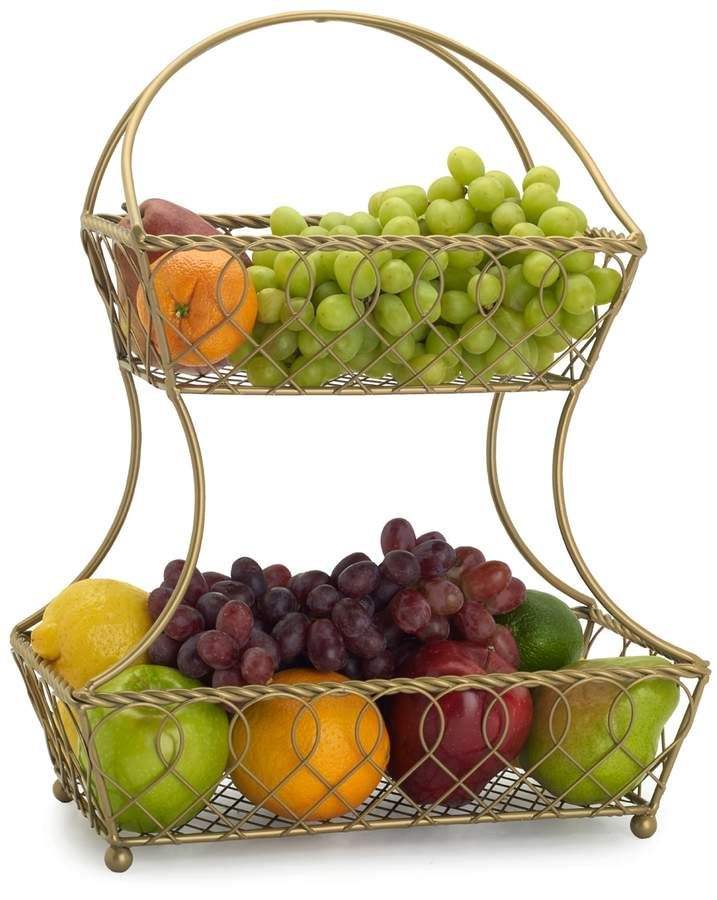 ตะกร้าผลไม้สีโรสโกลด์สองชั้นที่เก็บของตกแต่งห้องครัวที่หรูหรา