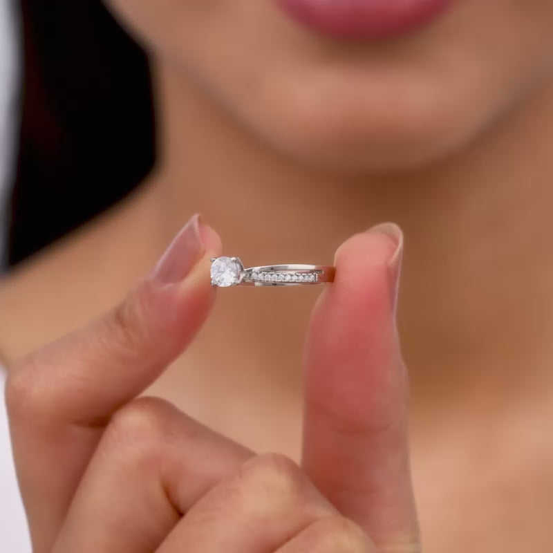 แหวนเพทายชุบสีโรสโกลด์และ18K ประดับด้วยเพทายสีเงินทันสมัยและทันสมัยรูปทรงตัวเลข