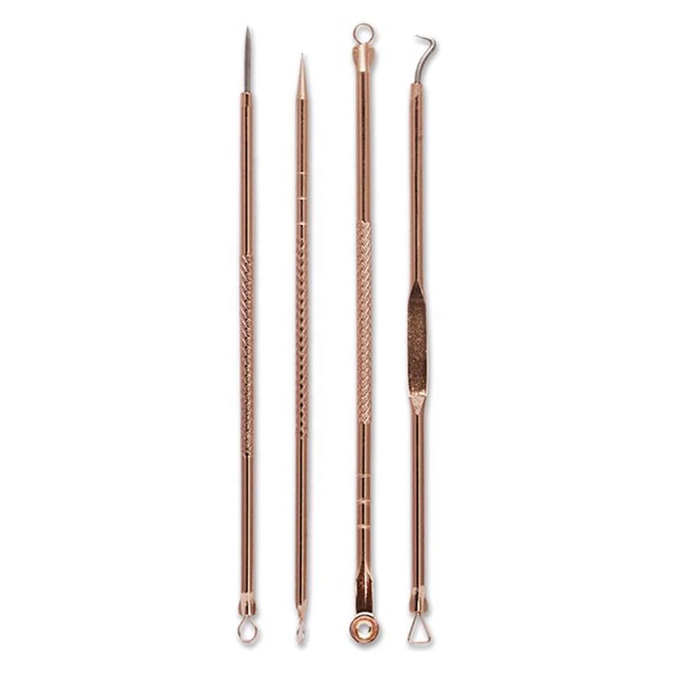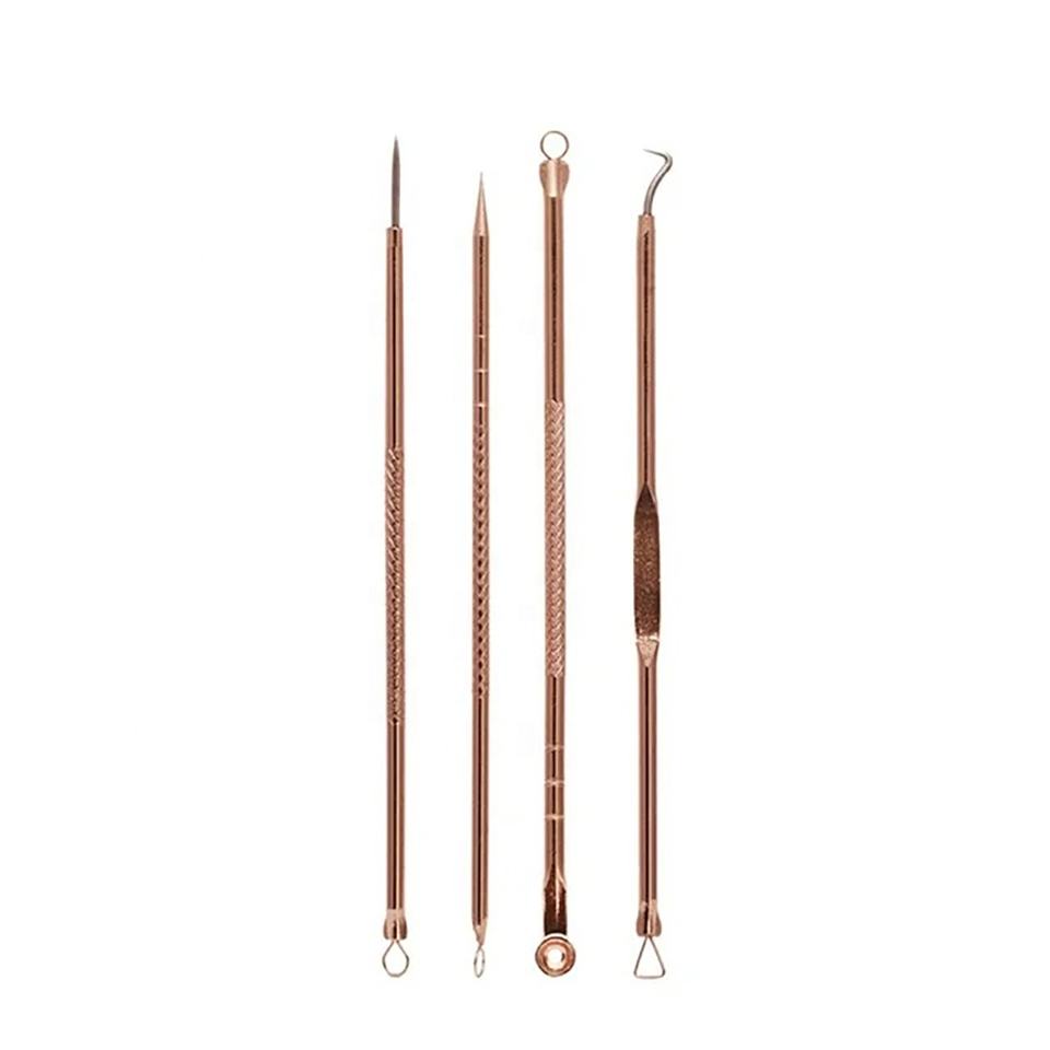 Rose Golden Elegance: หมุดหัวดําสแตนเลสสําหรับการสกัดสิวอย่างแม่นยํา กําจัดสิวหัวดําโดยหินสีเทา