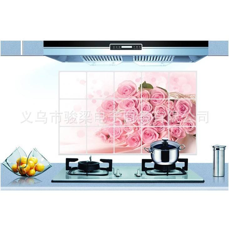 สติ๊กเกอร์ติดผนังกันน้ำมันกุหลาบ PVC รูปสี่เหลี่ยมผืนผ้า 45X75 ซม. ตกแต่งบ้าน AY3015