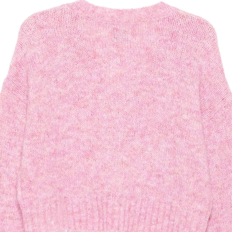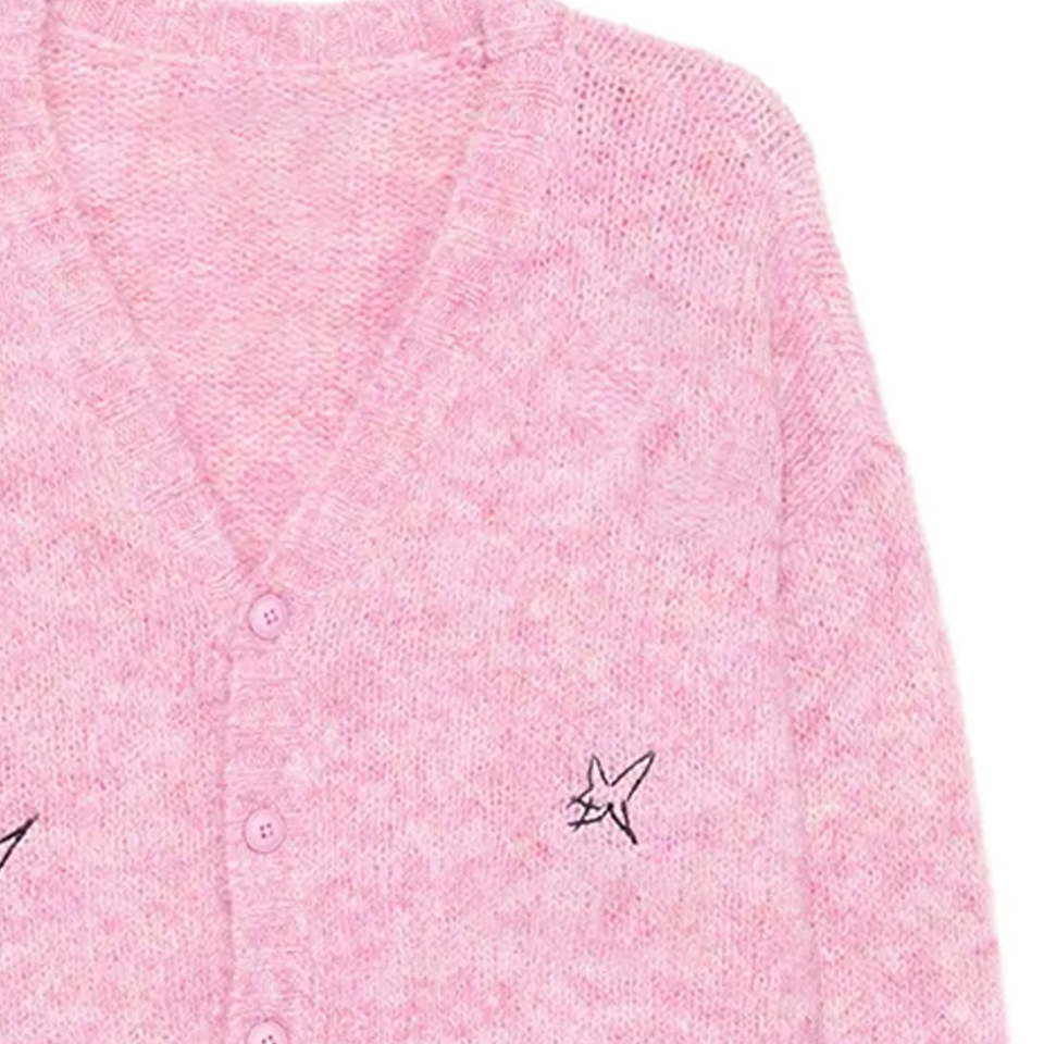 เสื้อคาร์ดิแกนไหมพรมคอวีปักลายกุหลาบสีชมพูสำหรับผู้หญิง สไตล์ยุโรปอเมริกัน แขนยาว ผ้าขนสัตว์/แคชเมียร์หนานุ่ม เหมาะสำหรับฤดูหนาว สวมใส่สบาย
