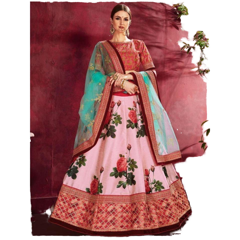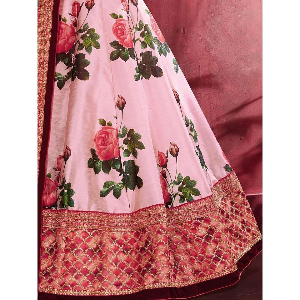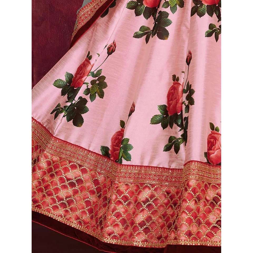 ชุดแต่งงานสุดหรูพิมพ์ลายดอกไม้สีชมพูกุหลาบผ้าไหม
