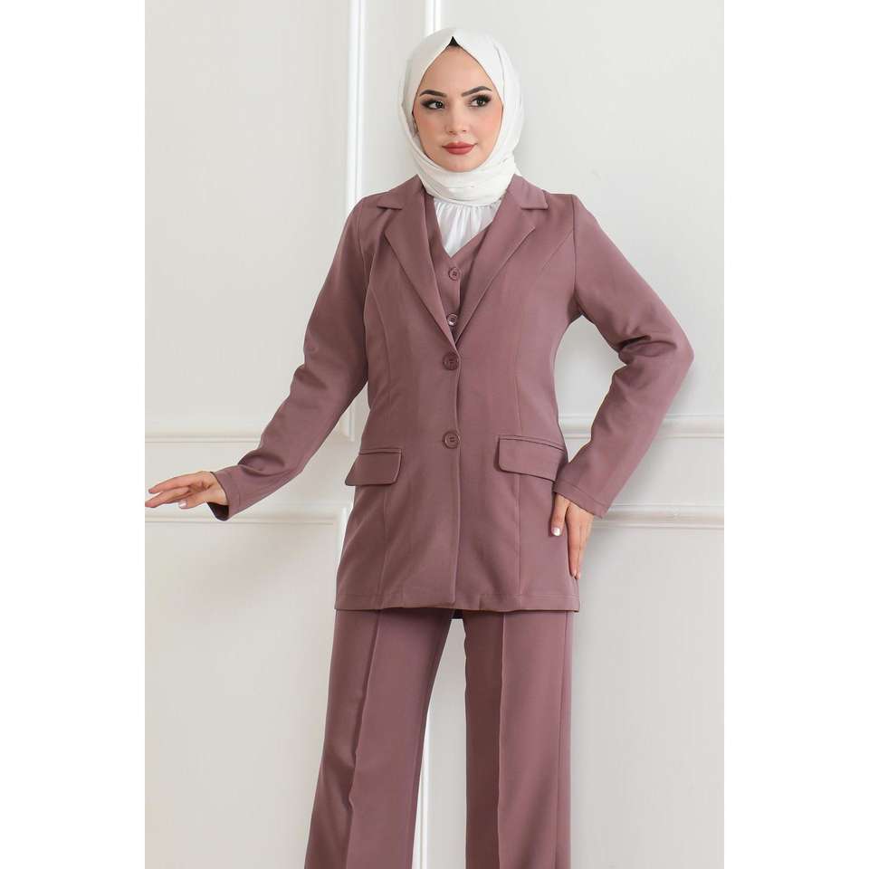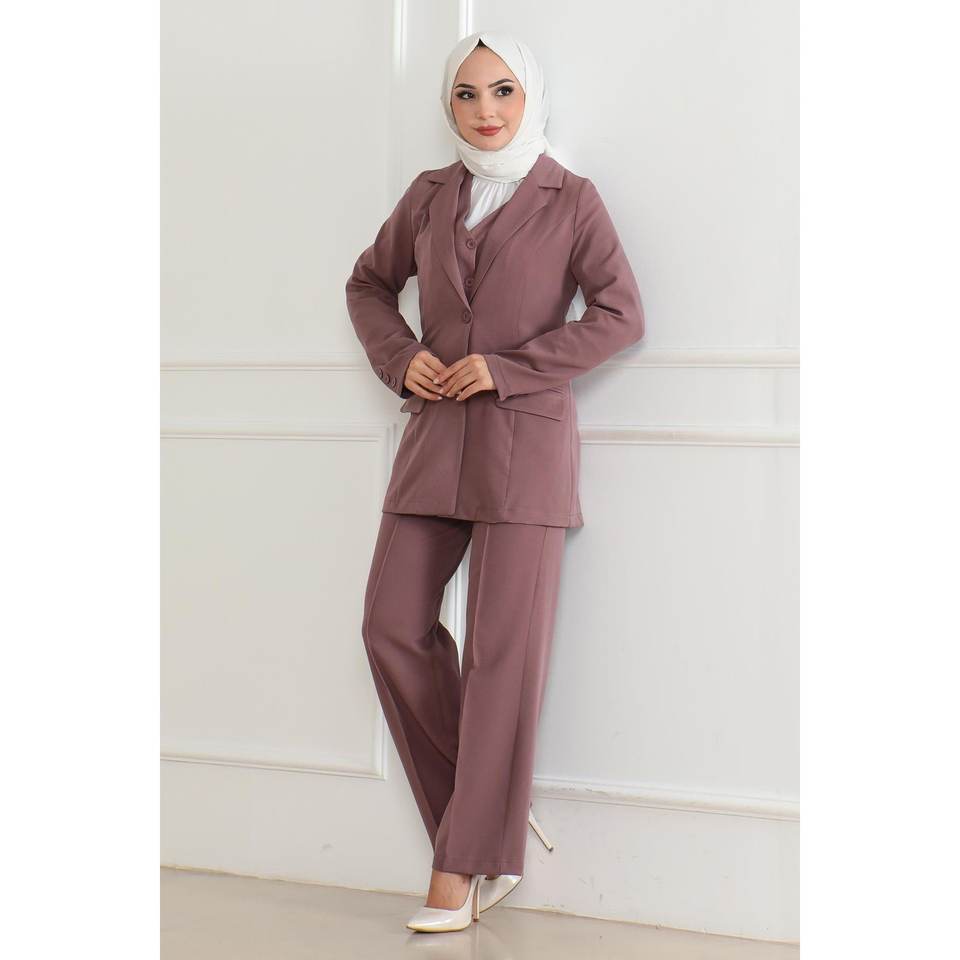 ชุดเสื้อกั๊กและกางเกงขายาวทรงบานสีชมพูกุหลาบ รุ่น MSW19222-3 คอเสื้อแบบคอกลม ผ้าโพลีเอสเตอร์ 100% ความยาวระดับกลาง ไซส์ XS