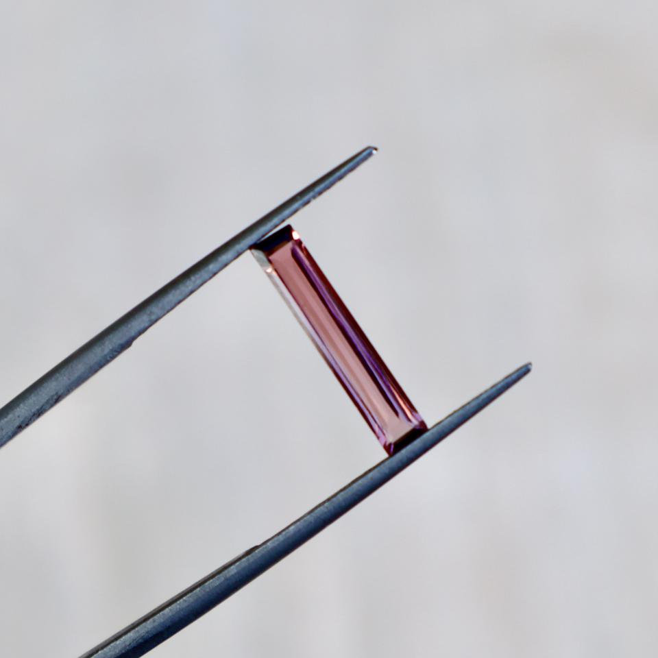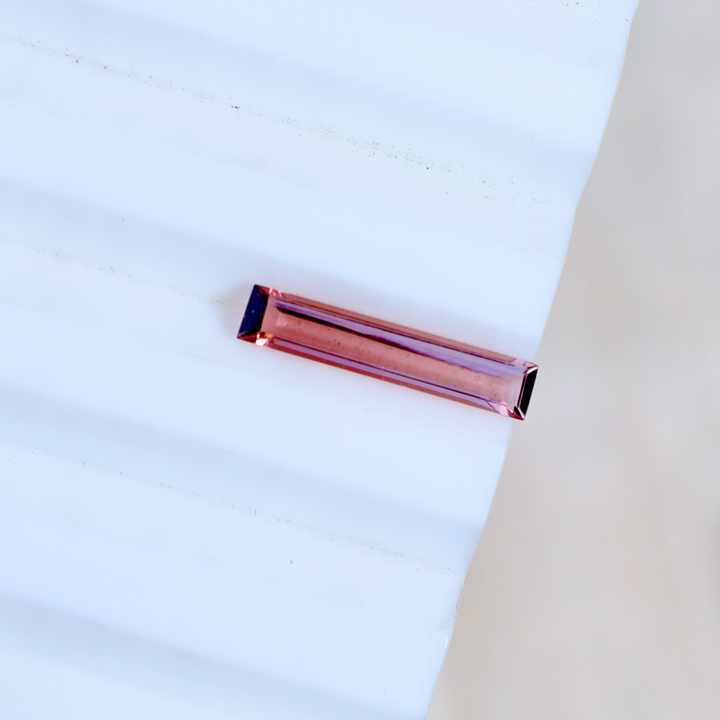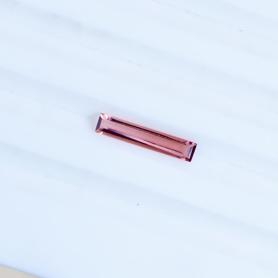 พลอยทัวร์มาลีนสีชมพูกุหลาบธรรมชาติทรงบาแกตต์ขัดเงา ขนาด 14x3 มม. พร้อมสีเล่นแสง เหมาะสำหรับทำเครื่องประดับ