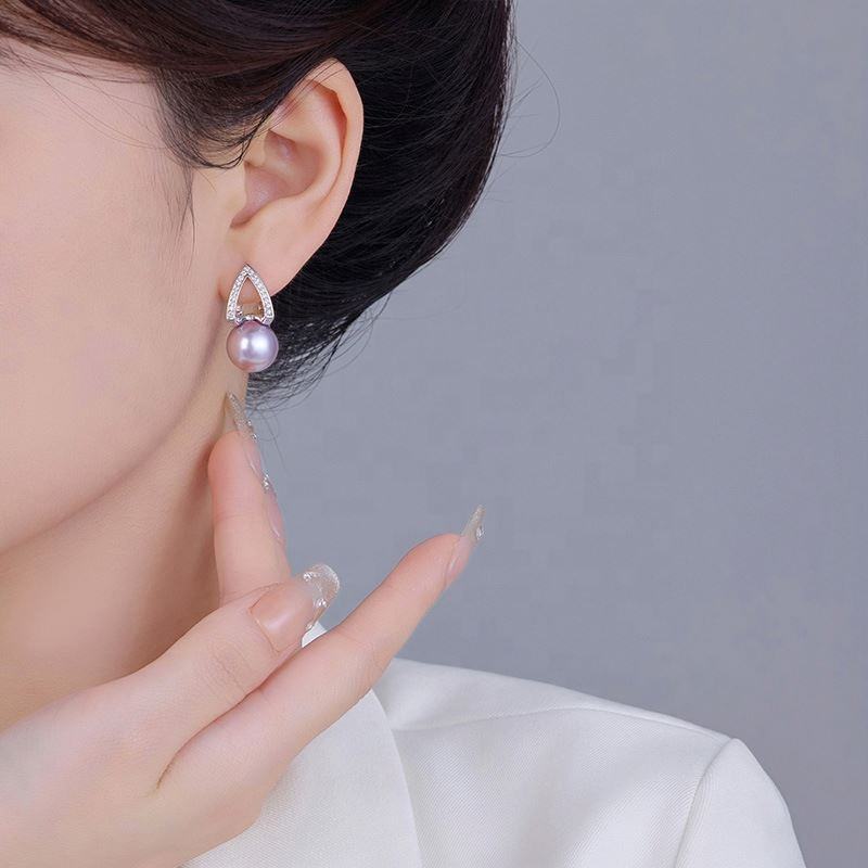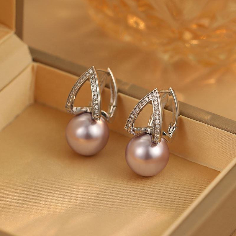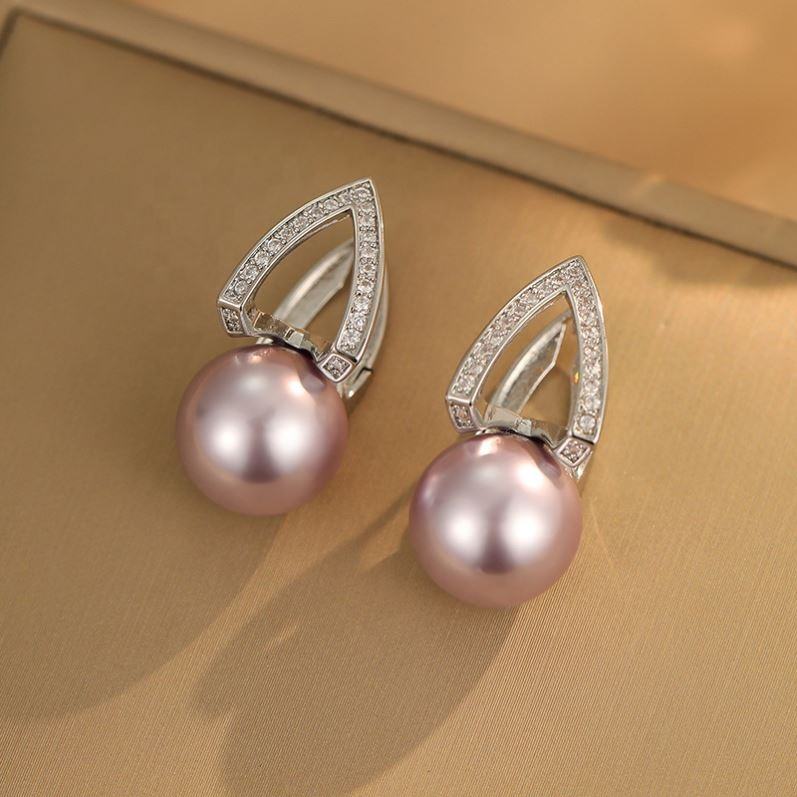 ต่างหูมุกทรงเรขาคณิตสีม่วงทองแดงประดับเพชรซิคอนสำหรับผู้หญิง คุณภาพสูง หรูหรา ทันสมัย ใช้งานได้หลากหลาย ชุบทอง แฟชั่น