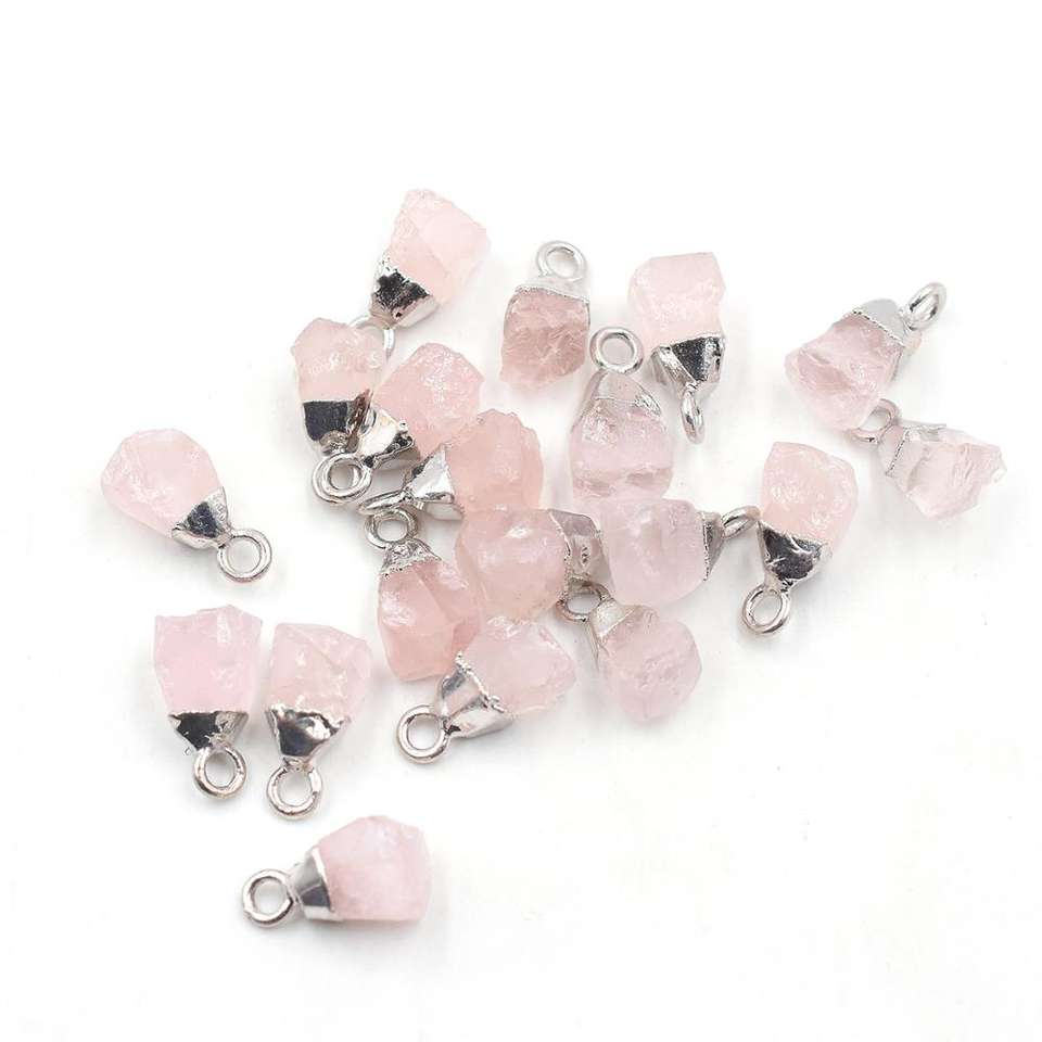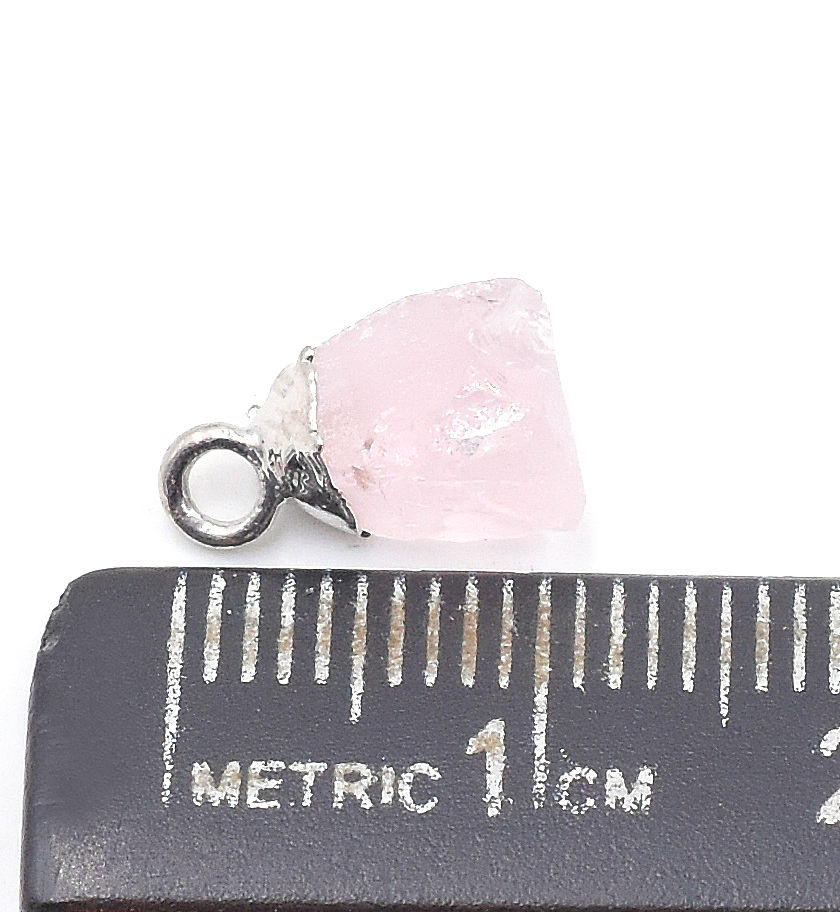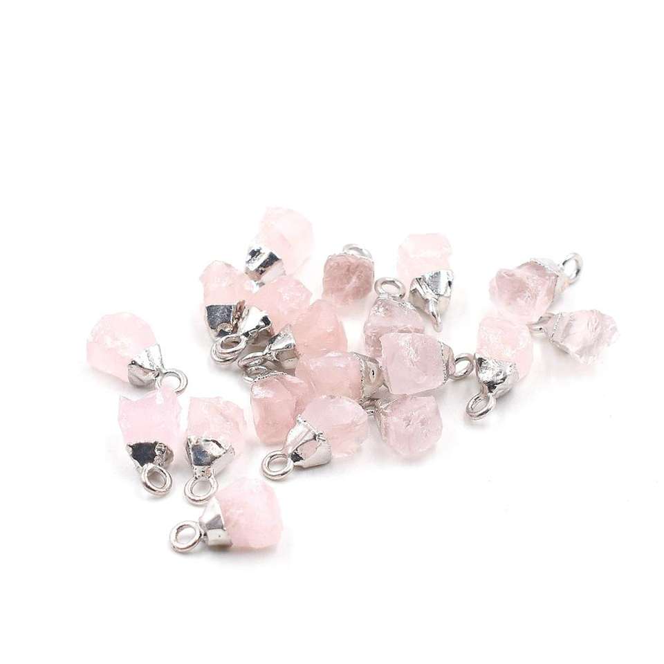 ชื่อสินค้า:โรสควอตซ์ ขนาด 11 ถึง 13 มม. พร้อมห่วงจี้ รูปทรงหยาบ ชุบเงิน