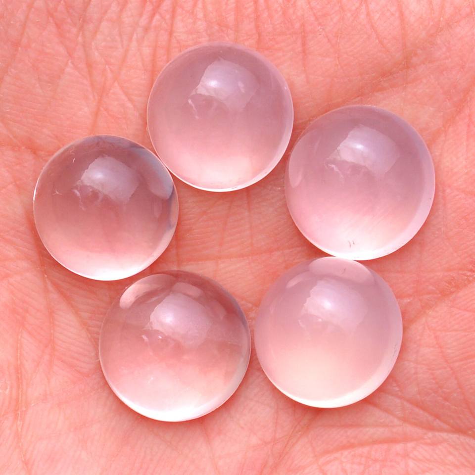 โรสควอตซ์ 14 มม. ทรงกลมแบบหลวม คาโบชอง สีชมพูอ่อนธรรมชาติ โรสควอตซ์ พลอยกึ่งมีค่า หลังเรียบ สำหรับทำเครื่องประดับ