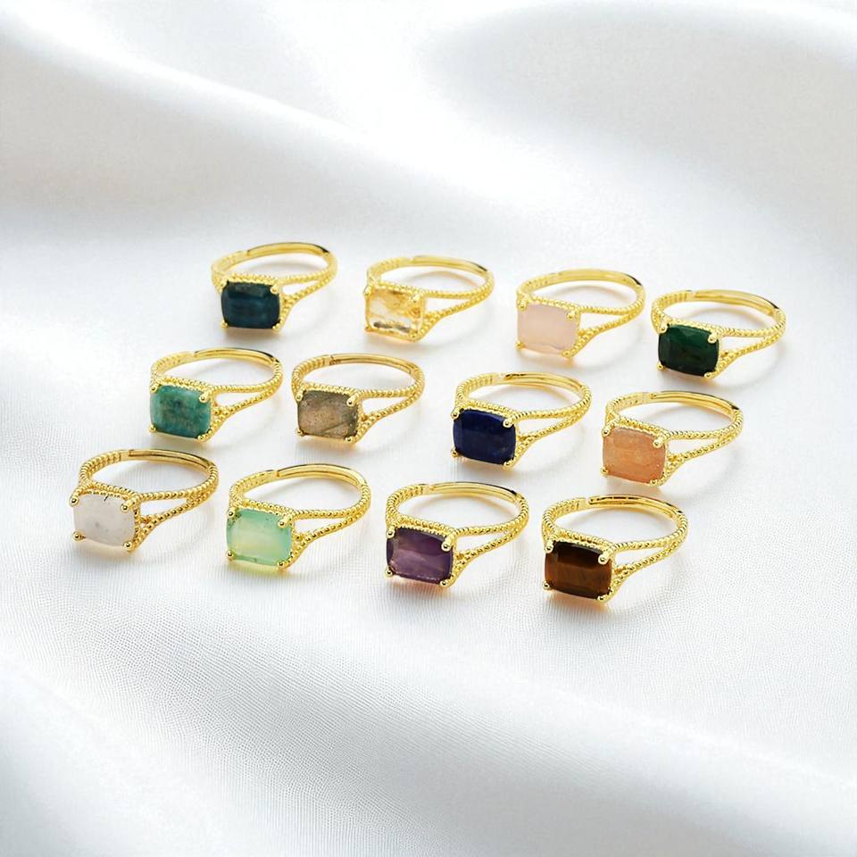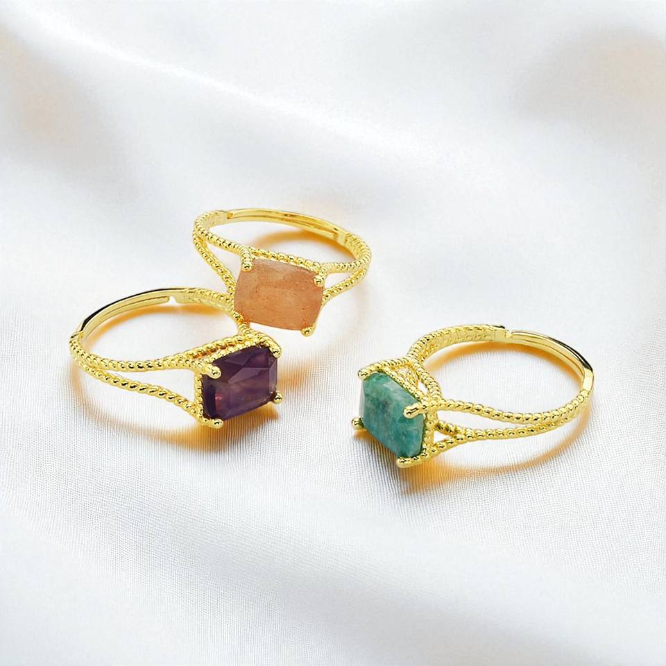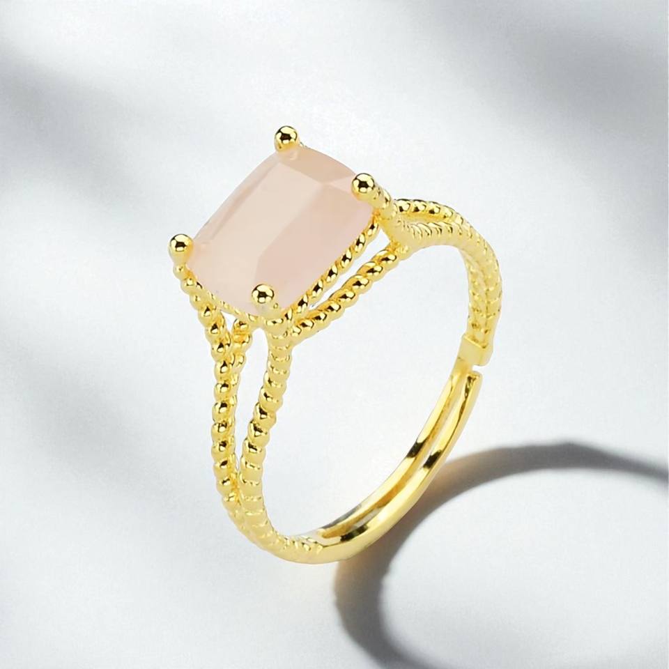 แหวนพลอยควอตซ์รูปกุหลาบ-แหวนพลอยสี่เหลี่ยมชุบทอง-แหวนบิดทรงแบนคุณภาพสูงขายส่ง