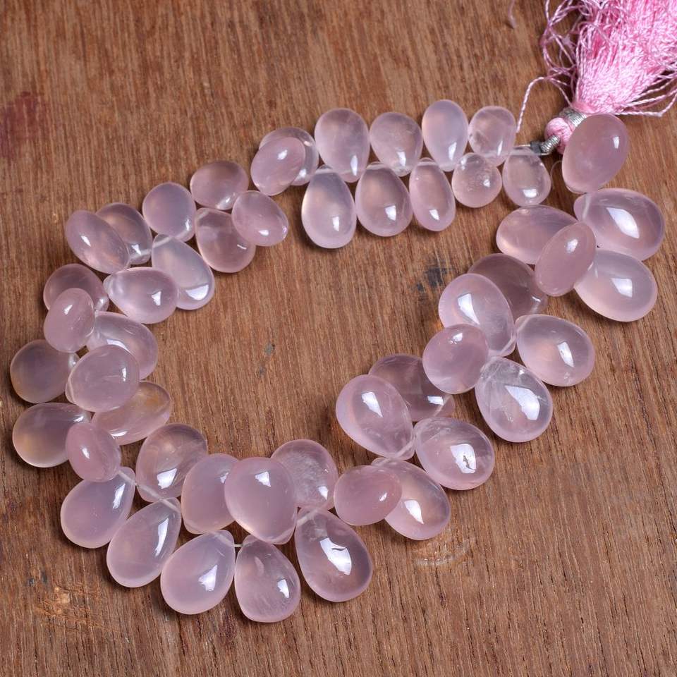 โรสควอตซ์อัญมณีหลวมจำนวนมากตัดลูกแพร์สีชมพูเรียบสำหรับทำเครื่องประดับทำลูกปัดรูปกุหลาบควอตซ์หายาก