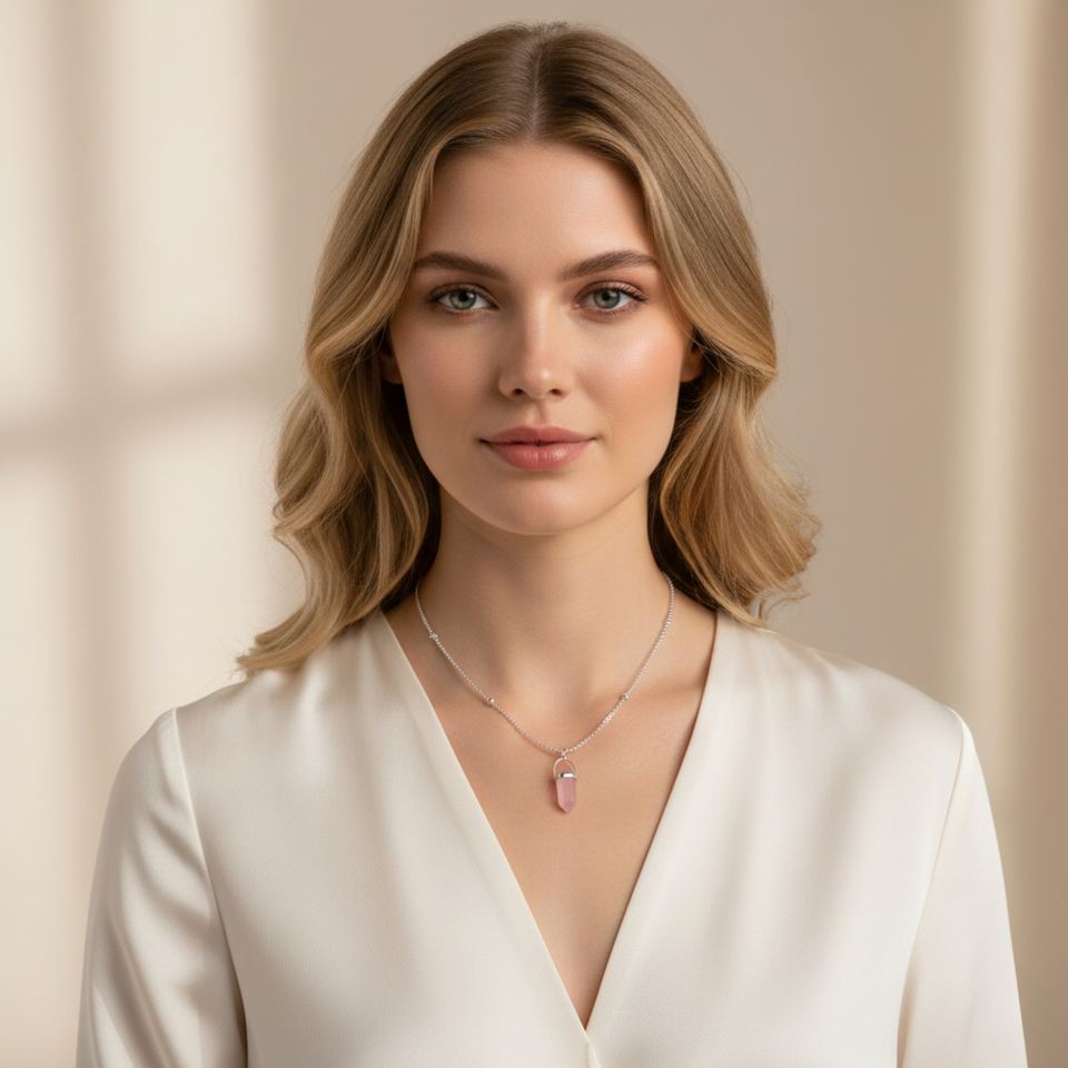 Product Name:Rose Quartz Sterling Silver Silver Plated Ball Chain Necklace