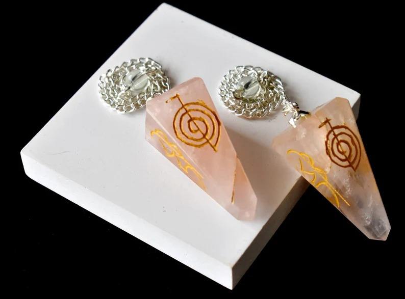 หินธรรมชาติทรงกรวยแกะสลักจากกุหลาบควอตซ์มีสัญลักษณ์ในการรักษารูปทรงกรวย