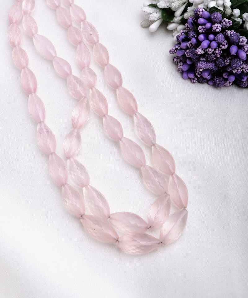โรสควอตซ์ทรงเหลี่ยม 16 นิ้ว แบบหยดน้ำ 1 เส้น ธรรมชาติ สำหรับทำเครื่องประดับอัญมณี