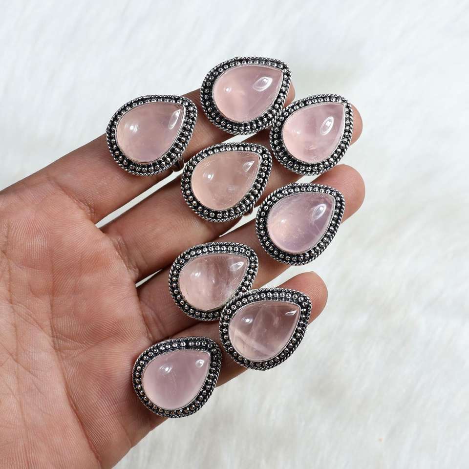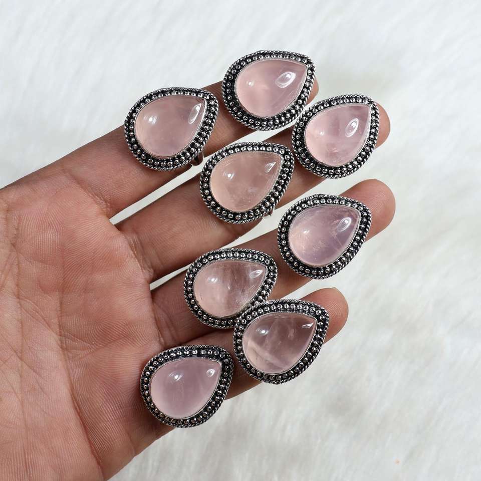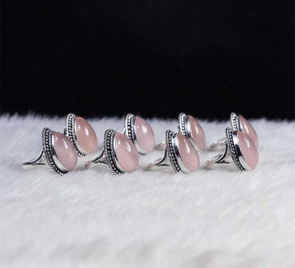 Product Name:Rose Quartz silver plated ring