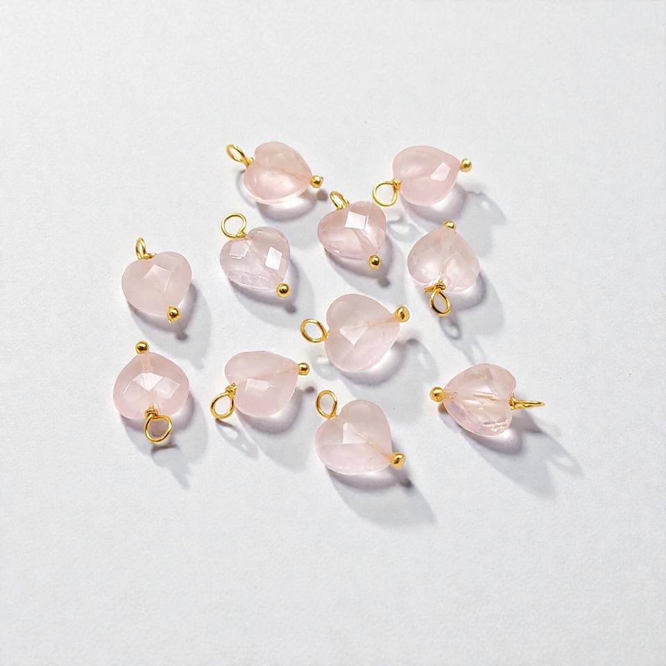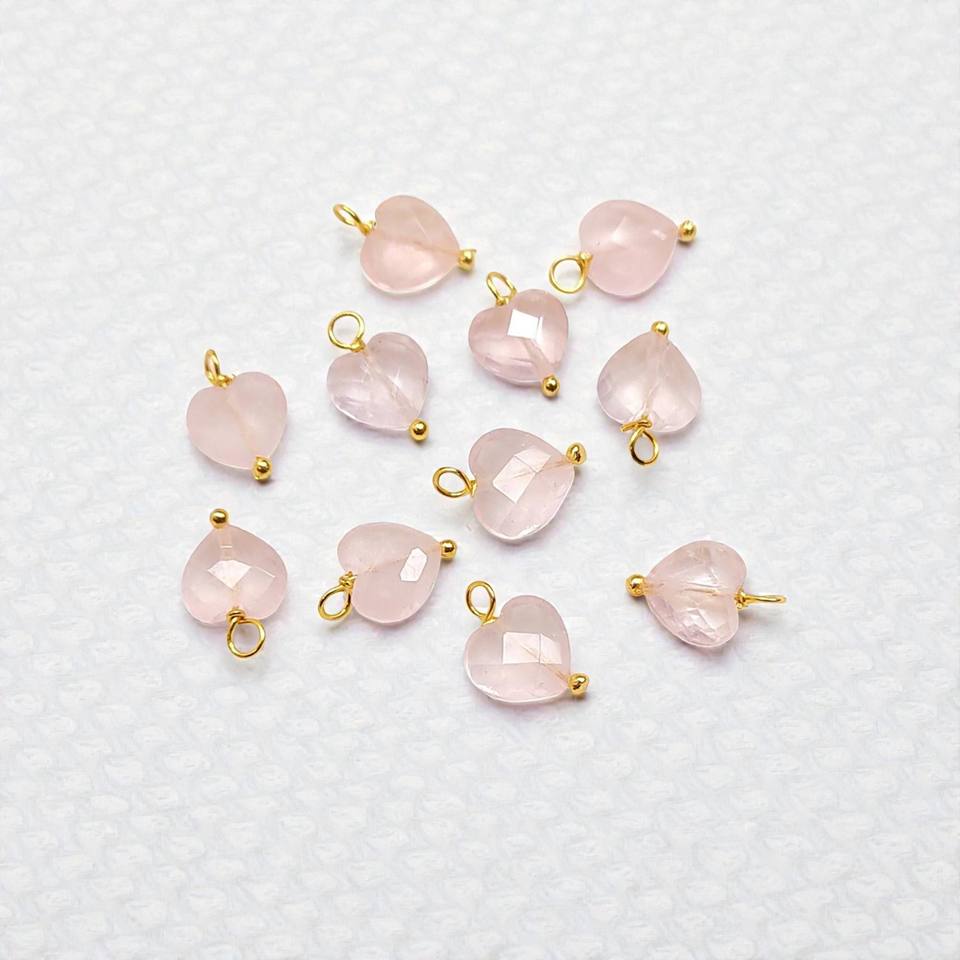 จี้รูปหัวใจโรสควอตซ์ทรงเหลี่ยม | จี้เงินประดับพลอยสีชมพูอ่อนสำหรับทำเครื่องประดับ DIY