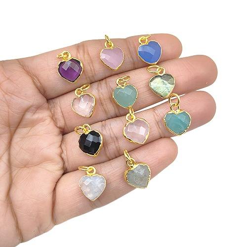จี้โรสควอตซ์รูปหัวใจ10มม. เครื่องประดับหินอิเล็คโทรเพลทเครื่องประดับทำด้วยไฟฟ้ารักหินเหลี่ยมเพชรพลอยสำหรับบุคคลที่สาม