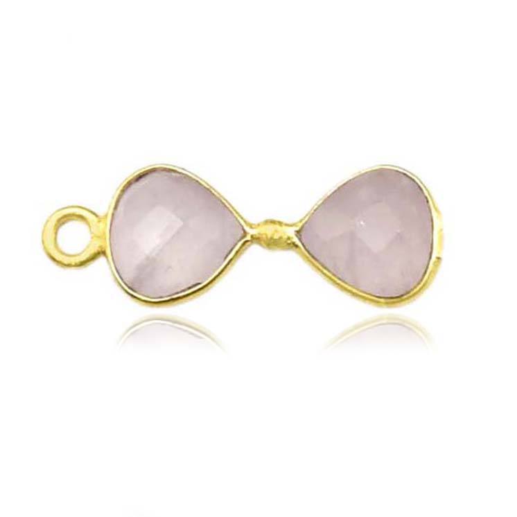 จี้รูปหัวใจหินคู่ขนาด6มม. ประดับด้วยเม็ดสีโรสควอตซ์สร้อยคอชุบทองทำด้วยมือของขวัญเครื่องประดับสุดโรแมนติกสำหรับผู้หญิง