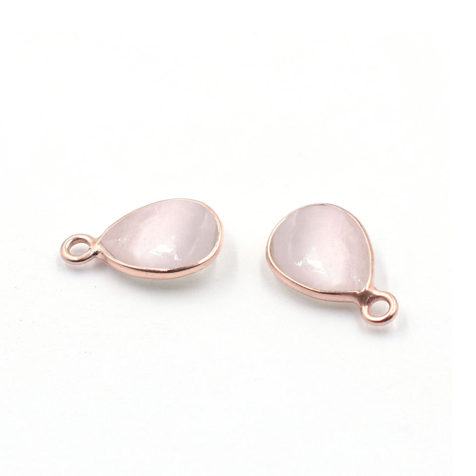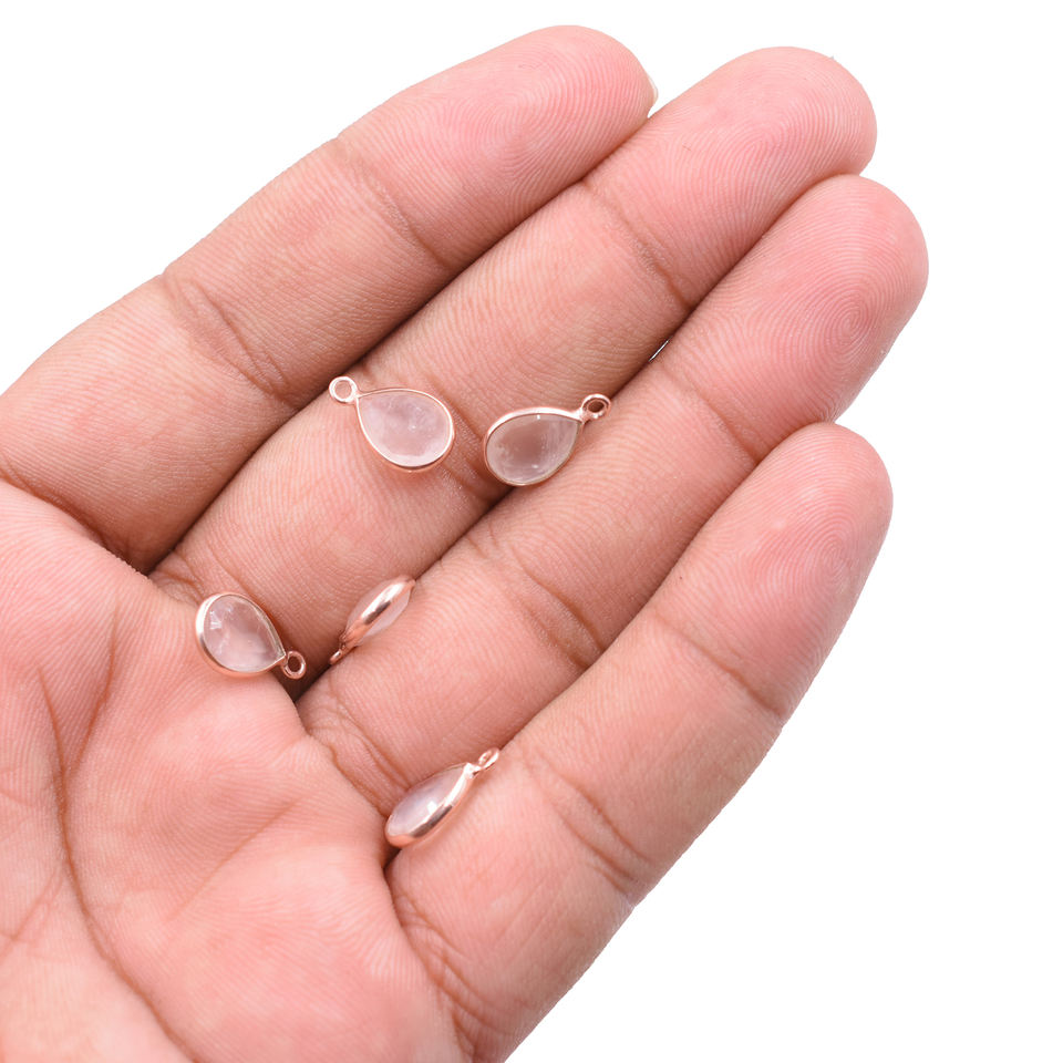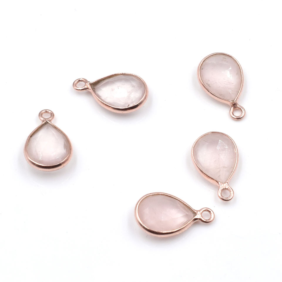 Rose Quartz Pear Shape 925 Sterling Silver Bezel Rose Gold Plated Pendant Handmade Jewelry Making