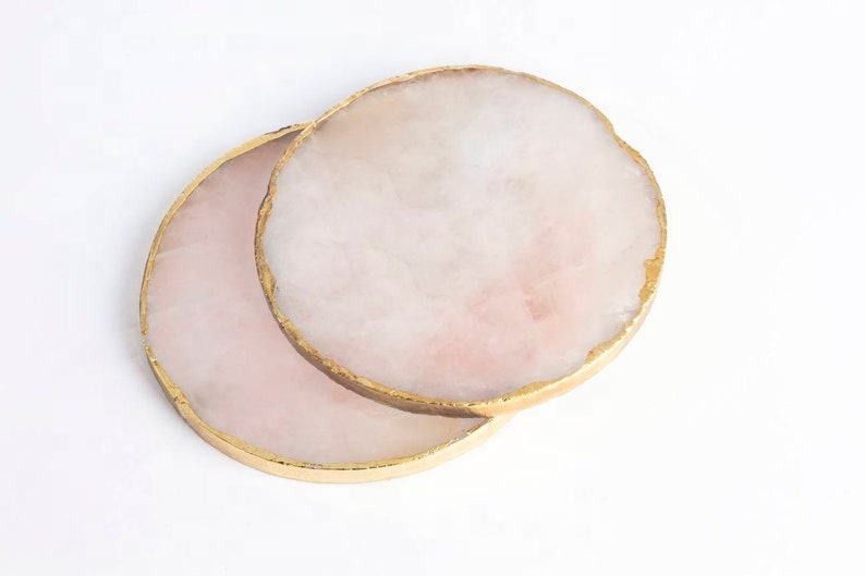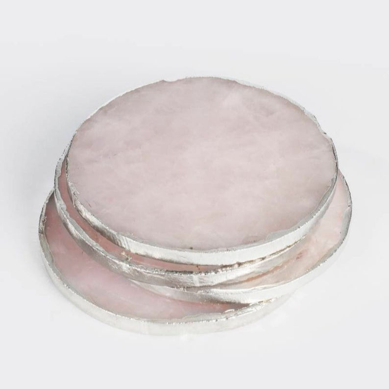 ROSE QUARTZ COASTER WITH SILVER EDGE