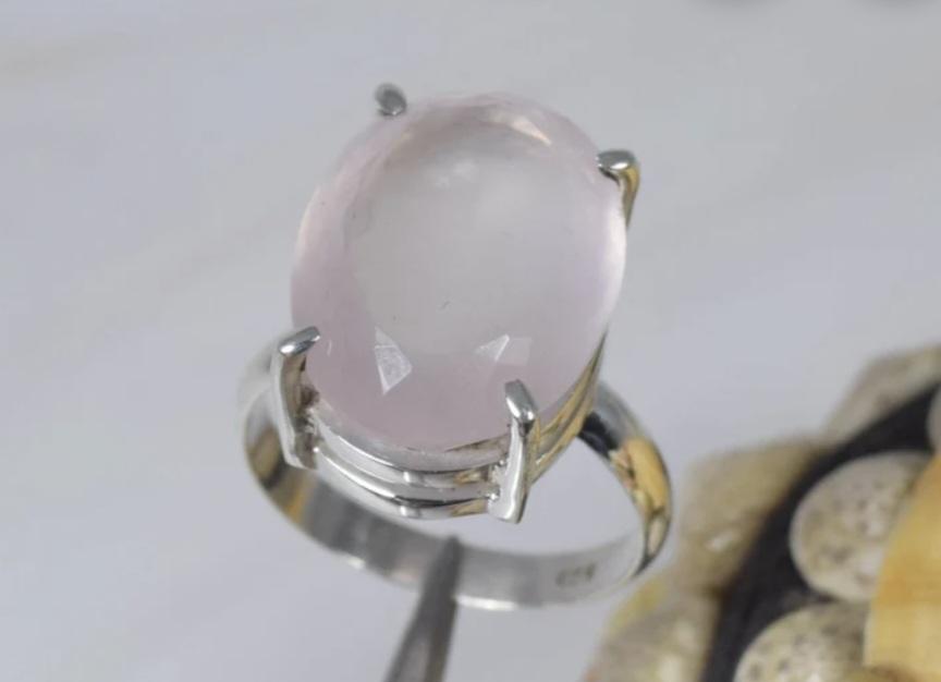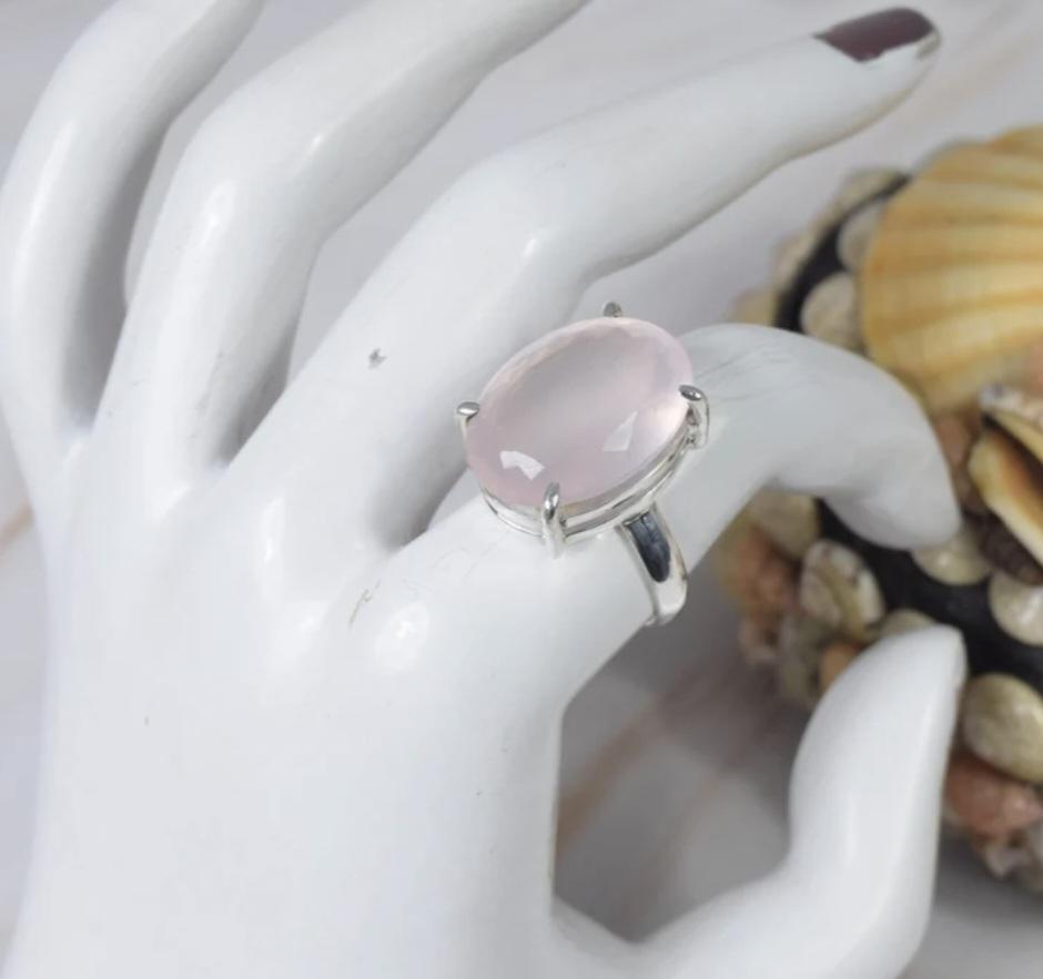 แหวนเงินโรสควอตซ์ แหวนประกายสง่างาม | ของขวัญเหนือกาลเวลาสำหรับเธอ
