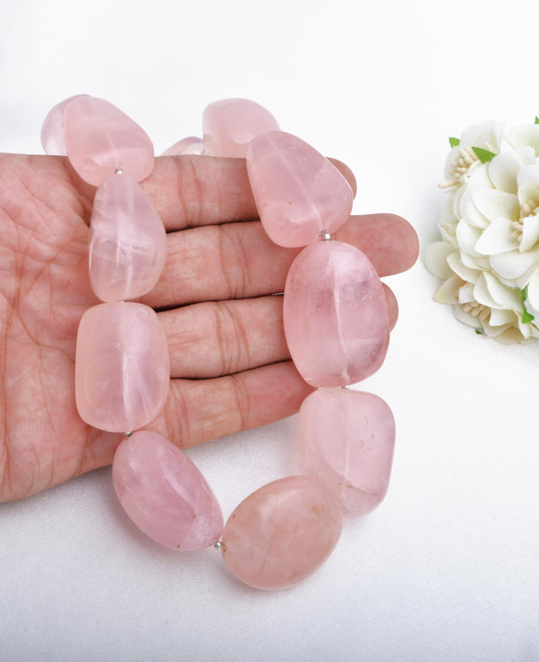 ลูกปัดโรสควอตซ์ทรงกลมเรียบ ขนาด 15 นิ้ว ลูกปัดโรสควอตซ์ธรรมชาติแบบเรียบ สำหรับทำเครื่องประดับอัญมณีชั้นดี