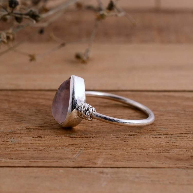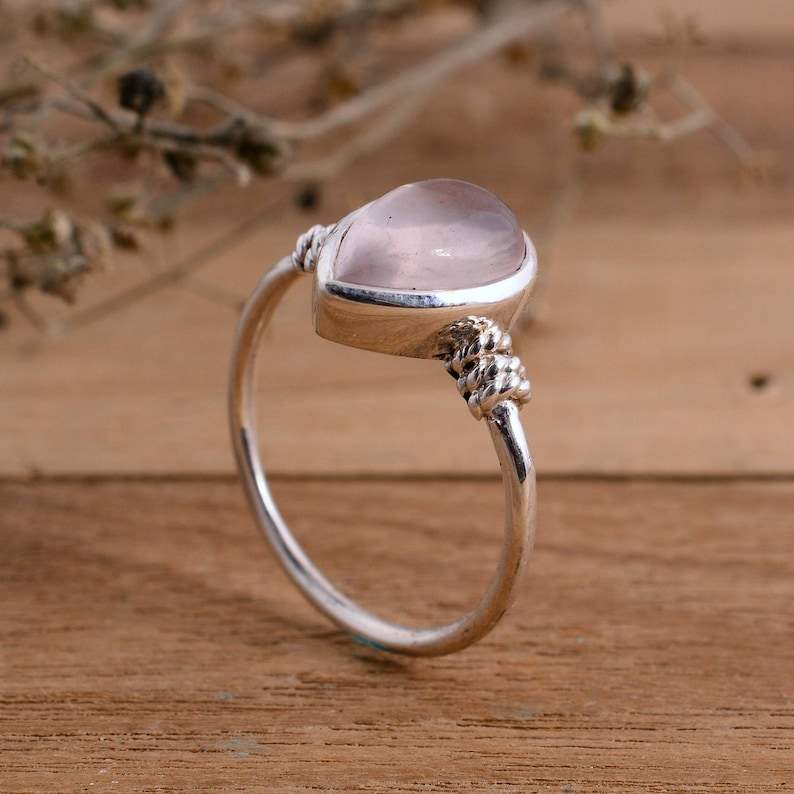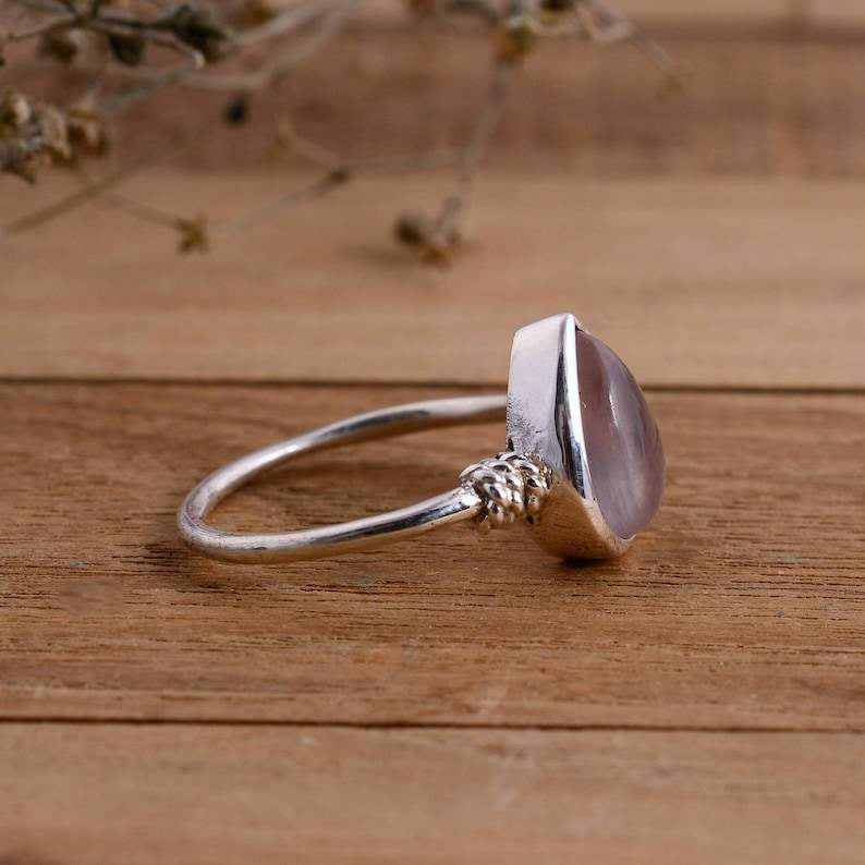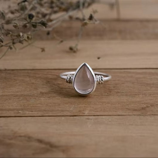 แหวนรูปหยดน้ำโรสควอตซ์ ~ แหวนเงินแท้ 925 ประดับพลอยทรงหยดน้ำ ~ แหวนหรูหราสำหรับทุกเพศ เหมาะเป็นของขวัญวันเกิดหรือของขวัญสำหรับงานปาร์ตี้