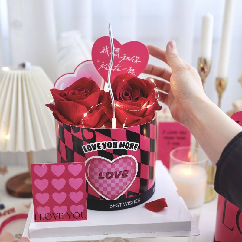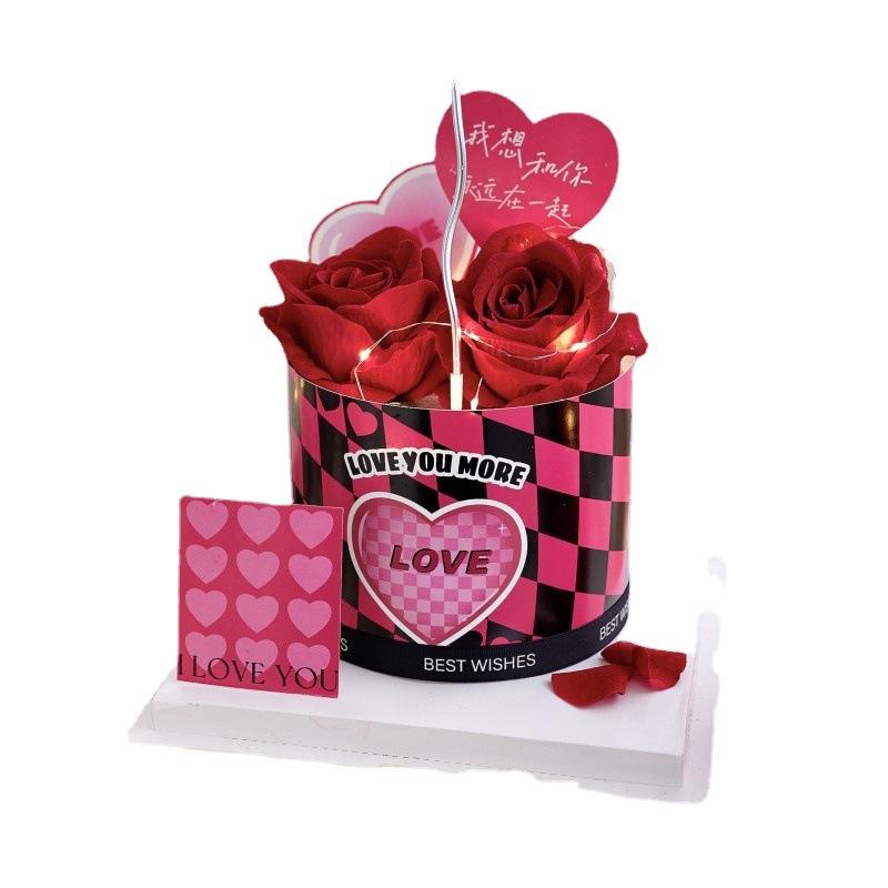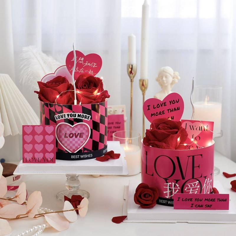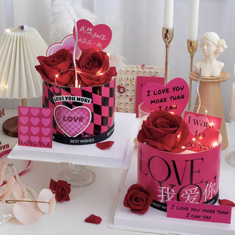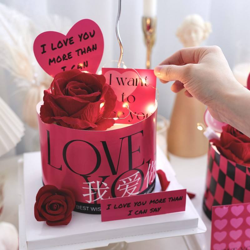 ขอบเค้กวันวาเลนไทน์สีแดงกุหลาบ ฉันรักคุณ ของตกแต่งเค้ก การ์ดรูปหัวใจ ของตกแต่งเค้กวันวาเลนไทน์