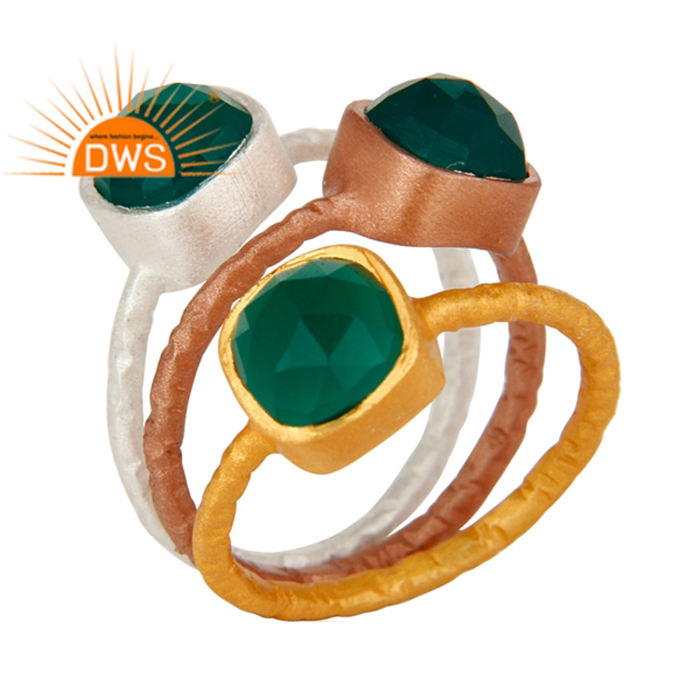 แหวนตอกสีเงินสเตอร์ลิงสีเหลืองโรสโกลด์อัญมณีสีเขียวพลอยนิลสำหรับเป็นของขวัญสำหรับผู้หญิง