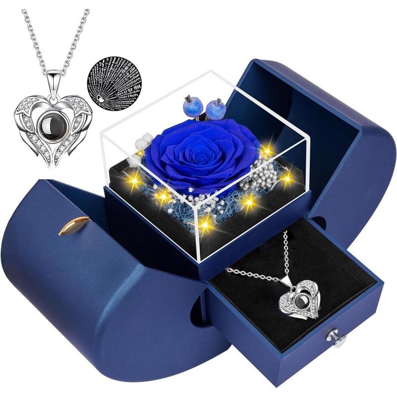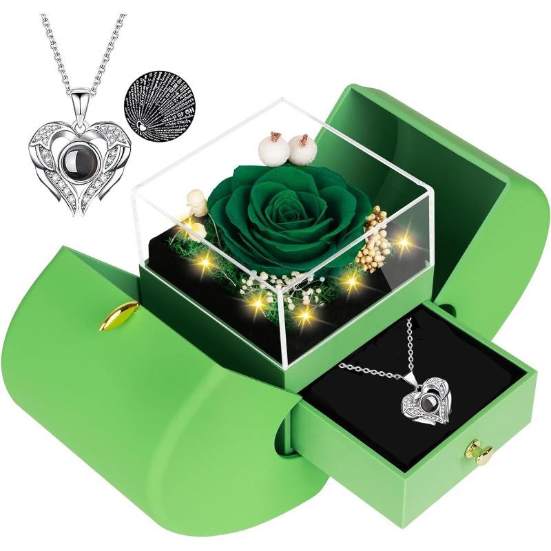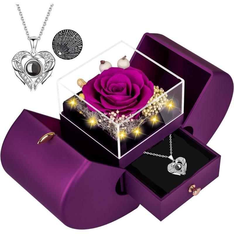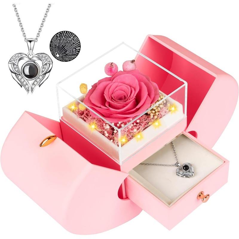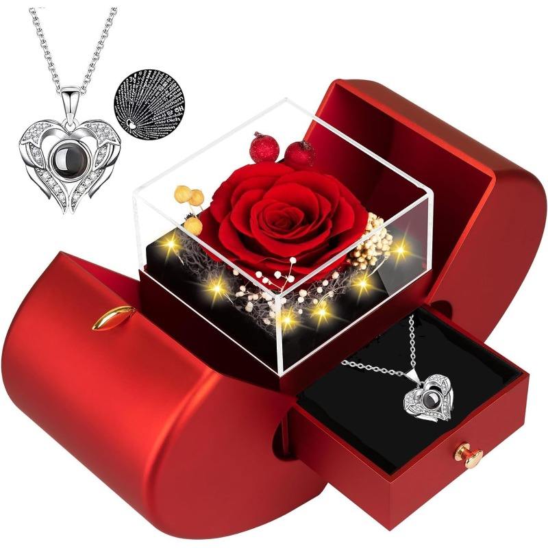 กล่องของขวัญรูปดอกกุหลาบ ตกแต่งด้วยดอกไม้สีแดง กล่องโชว์เครื่องประดับสุดโรแมนติก ปรับแต่งได้ตามความต้องการของคุณ