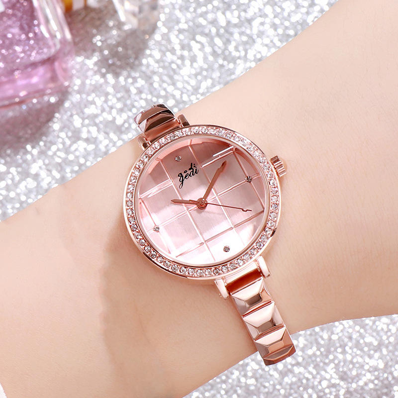 นาฬิกาผู้หญิงสีโรสโกลด์สร้อยข้อมือสุดสร้างสรรค์ลายตารางหมากรุกนาฬิกาแฟชั่นกันน้ำสำหรับนักเรียน