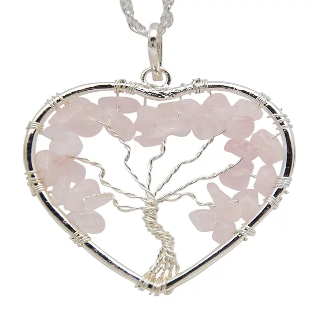 สร้อยคอจี้หินควอตซ์ธรรมชาติจี้ต้นไม้แห่งชีวิตจี้สร้อยคอสำหรับผู้ชายและผู้หญิง