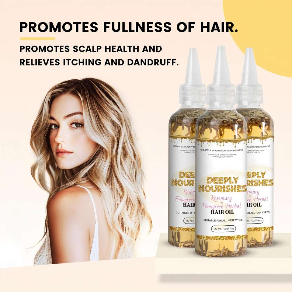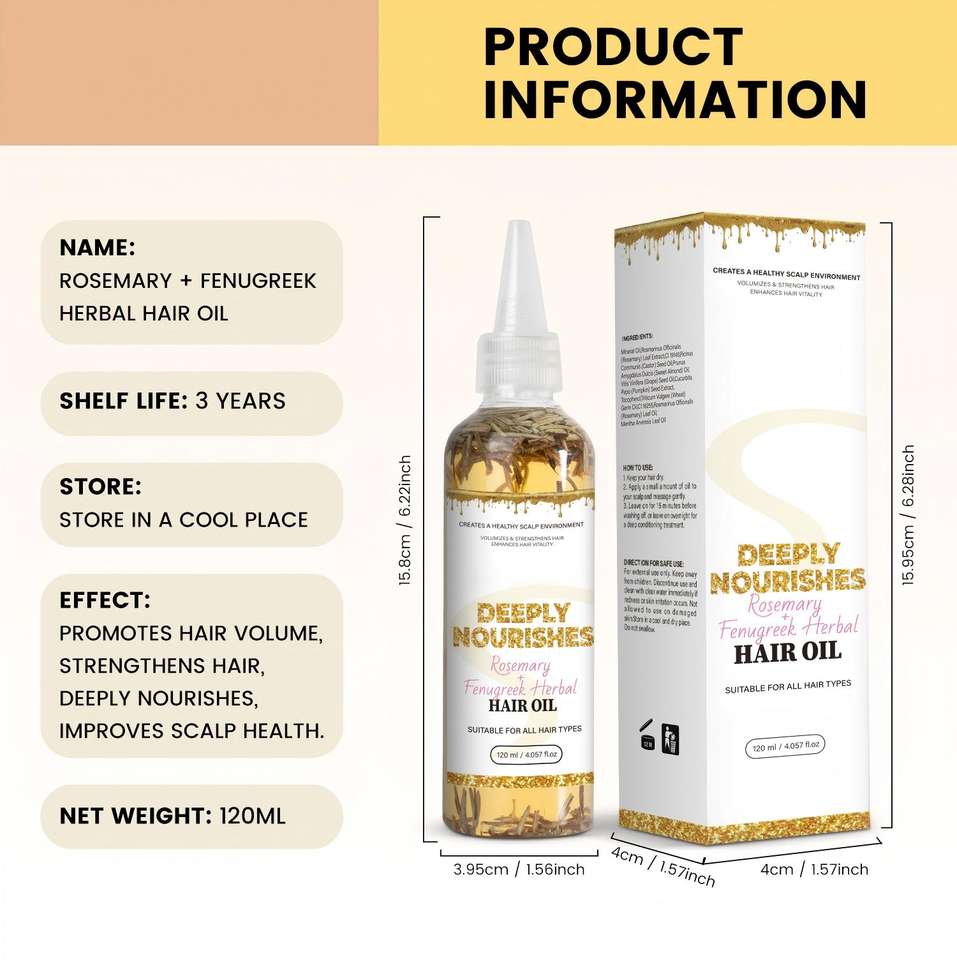 น้ำมันบำรุงผมโรสแมรี่และเฟนูกรีก 120 มล. รับผลิตแบบ OEM แบรนด์ส่วนตัว สำหรับคนทานมังสวิรัติ ลดผมชี้ฟู บำรุงให้ความชุ่มชื้น กระตุ้นการเจริญเติบโตของเส้นผม