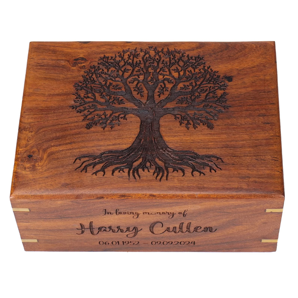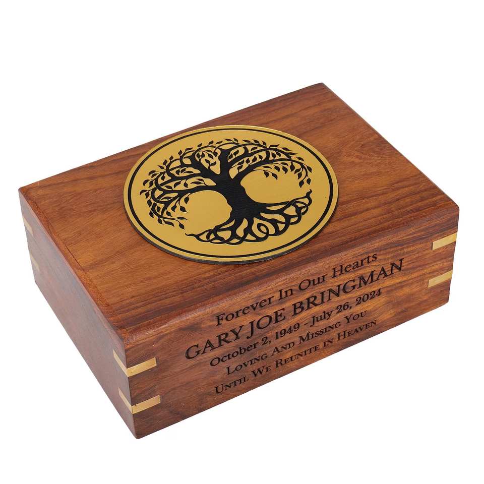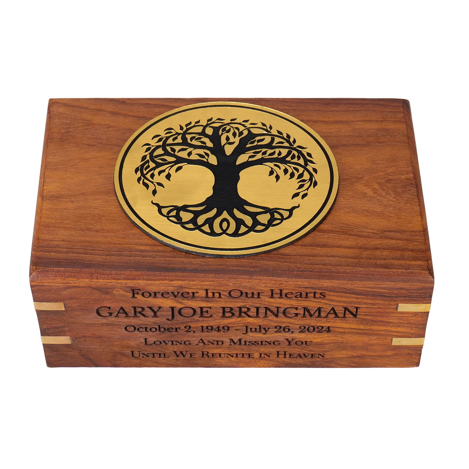กล่องใส่โกศไม้โรสวูดสำหรับผู้ใหญ่ขี้เถ้าไม้มะม่วงของที่ระลึกที่ระลึกสำหรับขี้เถ้าผู้ใหญ่ที่มีการแกะสลักต้นไม้แห่งชีวิต