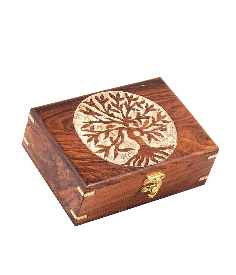 โรสวูดแฮนด์เมดโกศไม้ต้นไม้แห่งชีวิตแกะสลักกล่องเครื่องประดับแกะสลักด้วยมือสําหรับผู้หญิง-ผู้ชายอัญมณี | แอคเซนต์ตกแต่งบ้าน