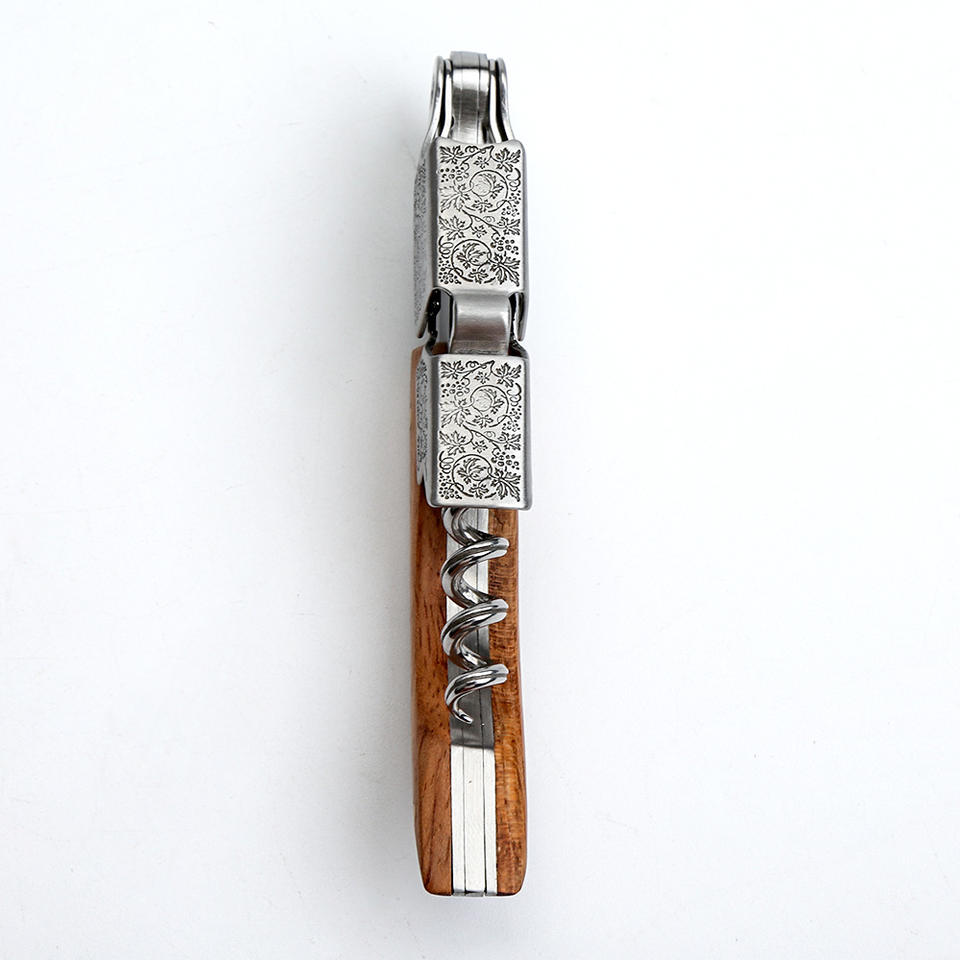 มีดเปิดขวดไวน์สแตนเลสโรสวูด 12.5 ซม. พร้อมที่เปิดฝาขวดและที่ตัดหัวกุ้ง