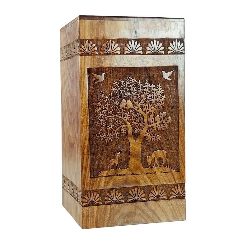 โรสวูดออร์นสําหรับเถ้ามนุษย์ต้นไม้แห่งชีวิตกวางสัตว์เลี้ยงส่วนบุคคลงานศพทําด้วยมือ