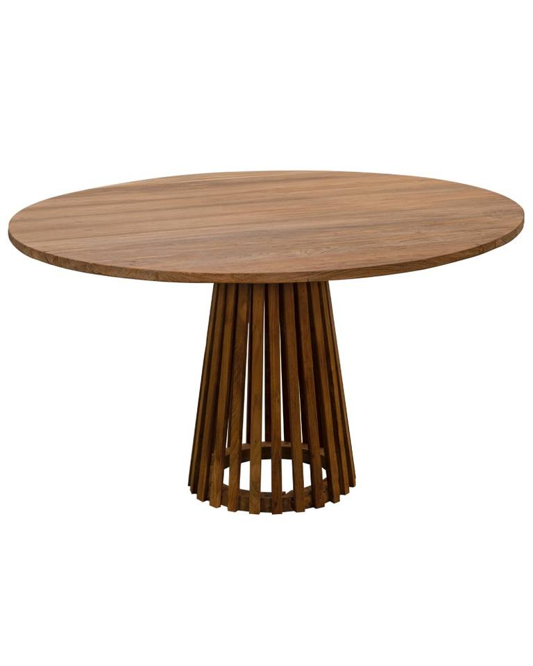 โต๊ะรับประทานอาหารทรงกลม Rossa ทำจากไม้สักแท้ ขาทรงกรวย พร้อมการตกแต่งแบบธรรมชาติ สำหรับใช้ภายในและภายนอกอาคาร