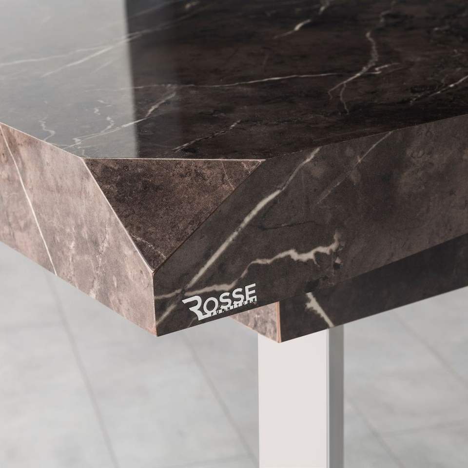 โต๊ะอาหารโรสเซ่ โมเดิร์น ทั้งส่วนบนทำจากหินอ่อน โครงเหล็กสแตนเลส รูปทรงสี่เหลี่ยมผืนผ้า สำหรับ 6 ที่นั่ง สามารถขยายได้