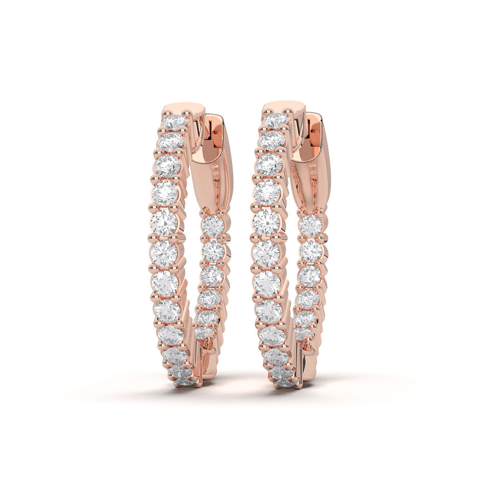 ต่างหูแบบห่วงเพชรโมอิส1.00Ct กลมสีโรสโกลด์เรืองแสง14K