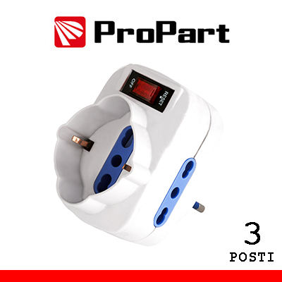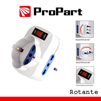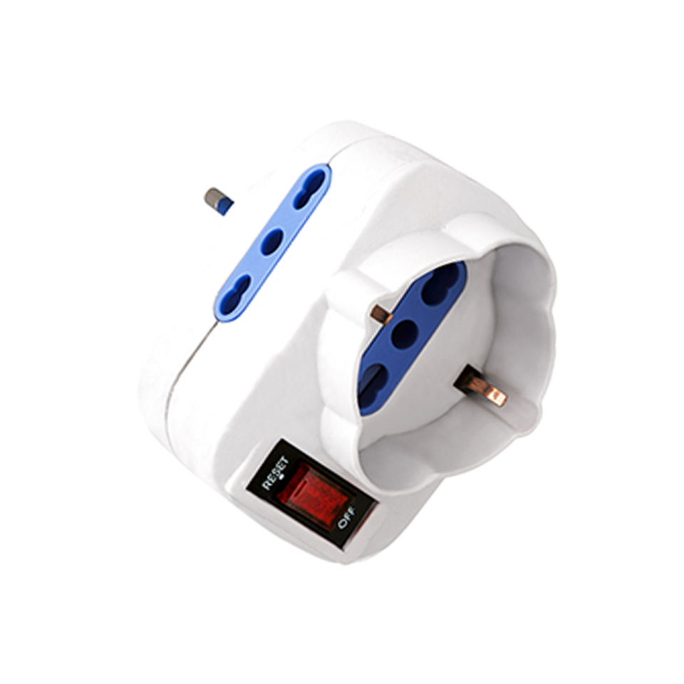 Rotary 3-Pos Bipasso/Schuko Plug 10A Power Adapter with Interconnect for Various Applications