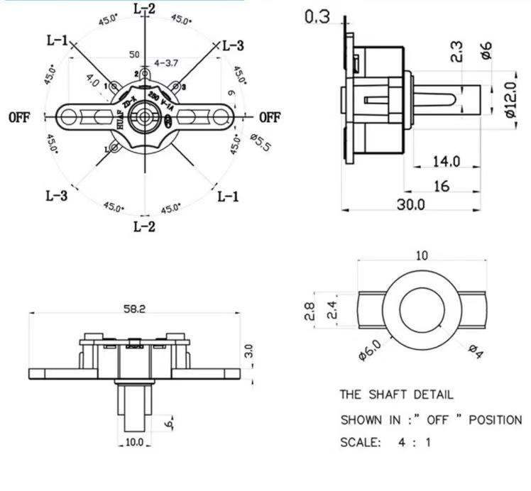 สวิตช์โรตารี่ 10A250V แบบขั้วเดียว 1 2 3 สปีด สวิตช์เลือกความเร็วพัดลม ผู้ผลิตสวิตช์โรตารี่แบบเลือกได้